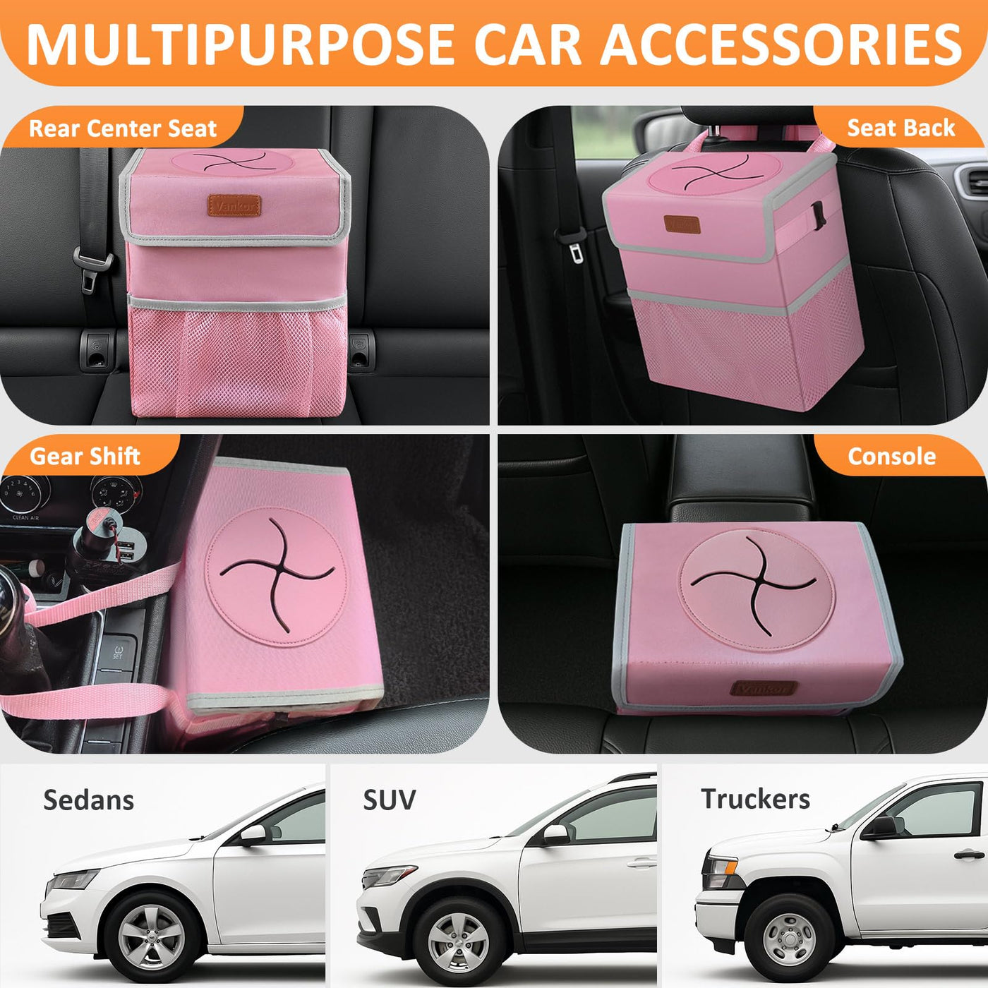 Vankor 3 Gallons Car Trash Can With Lid, Car Trash Bag Bin Hanging Waterproof Automotive Garbage Cans Leak Proof Vehicle Trash C
