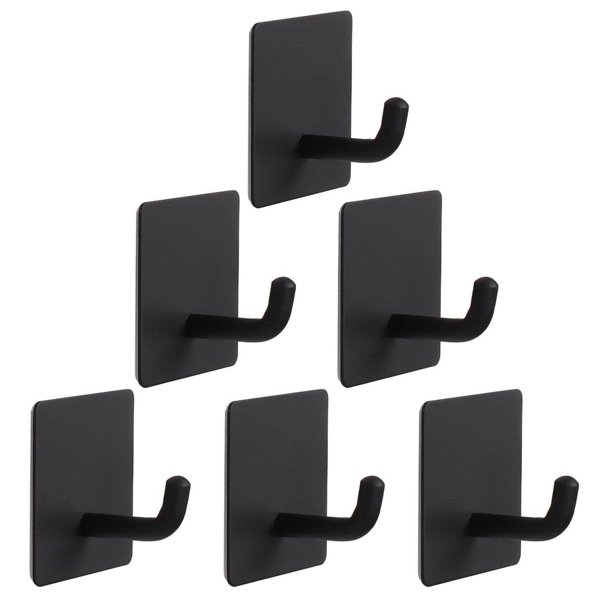 Vanloory Bath Towel Hooks - 6 Pack Strong Self Adhesive Coat/Clothes Hooks, No Drilling Sticky Hooks, Heavy Duty 304 Stainless Steel Shower Wall Hook For Bathroom Kitchen Bedroom(Matte Black)