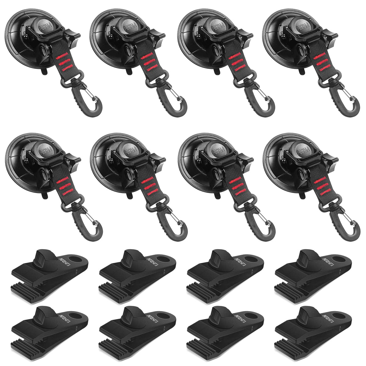 Vashly Heavy Duty Suction Cup 8Pcs Strong Suction Cups With Hooks And 8Pcs Tarp Clips Deavy Duty Lock Grip For Car Awning Boat Camping Trap Tie Down
