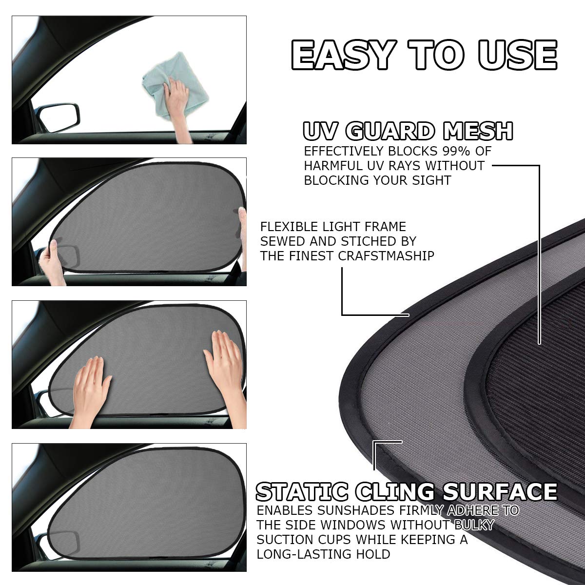 Vaygway Baby Window Sun Shade- Car Accessories Side Sun Visor- Kids Pets Seat 2 Pk- Sun Glare Uv Rays Protection