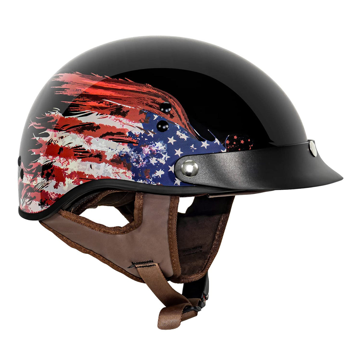 Vcan Cruiser Half Face Motorcycle Helmet With Drop-Down Sun Visor, Removable Peak And Quick Release Buckle