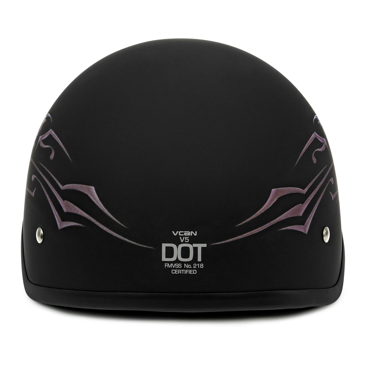 Vcan Cruiser Half Helmet Offers A Combination Of Style, Safety And Comfortable Off Road Experience. This Skid Lid Is Created With A Top Quality Abs Thermoplastic Resin Shell That Meets Dot Standards. The Lush Interior Padding Provides Top Of The Line Comfort, While The Double D Ring Secured Adjustable Nylon Chin Strap Provides One Of The Best Fits On The Market Today. It Also Includes A Removable Visor Which Is Screwed In For Greater Durability And Washable Cheek Pads.