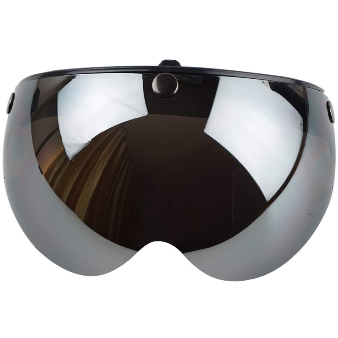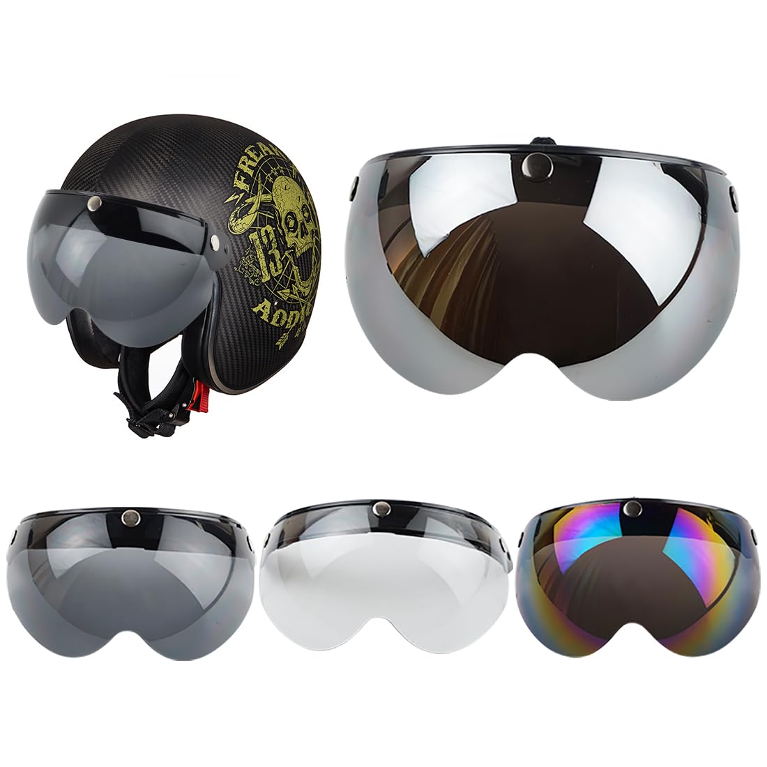 VCOROS Universal Motorcycle Retro Pilot-Style Standard 3 Snap-Button Visor Flip Up Down Open Face Helmet Half Face Shield(Chrome