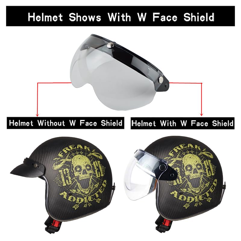 VCOROS Universal Motorcycle Retro Pilot-Style Standard 3 Snap-Button Visor Flip Up Down Open Face Helmet Half Face Shield(Clear)