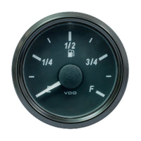 Q: What is the range of the VDO SingleViu 52mm Fuel Level Gauge?A: The VDO SingleViu 52mm Fuel Level Gauge operates on an E/F scale with a resistance range of 240-33 Ohm, making it compatible with various fuel systems.