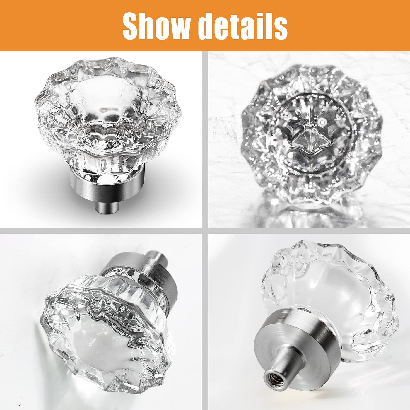 Vehcil 8 Pack Crystal Dresser Knobs, Single Hole Brushed Nickel Cabinet Knobs Crystal Knobs For Drawers Hardware For Kitchen Cupboard Bathroom, Round Flower Design
