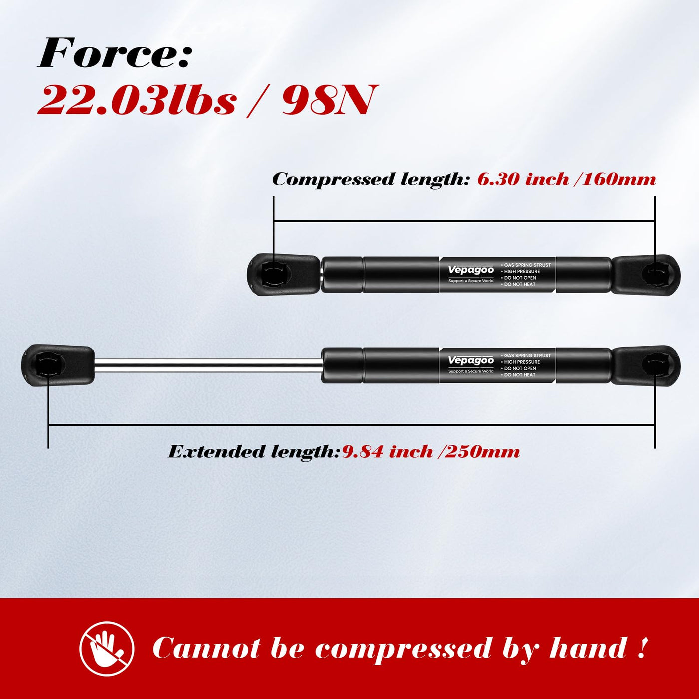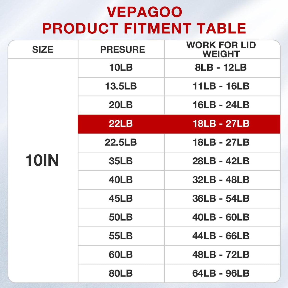 Vepagoo 10 Inch 22 Lb/98N Gas Shock Spring Strut For Cabinet Door Toy Tool Box Lid, Camper Shell Topper Window, Truck Tool Box,