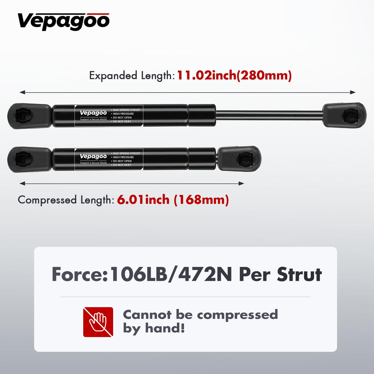 Vepagoo 11 inch 106Lb/472N Gas Strut Shock for Truck Tool Box Lid, Weatherguard Toolbox Lift Support Camper Topper Window Cadet
