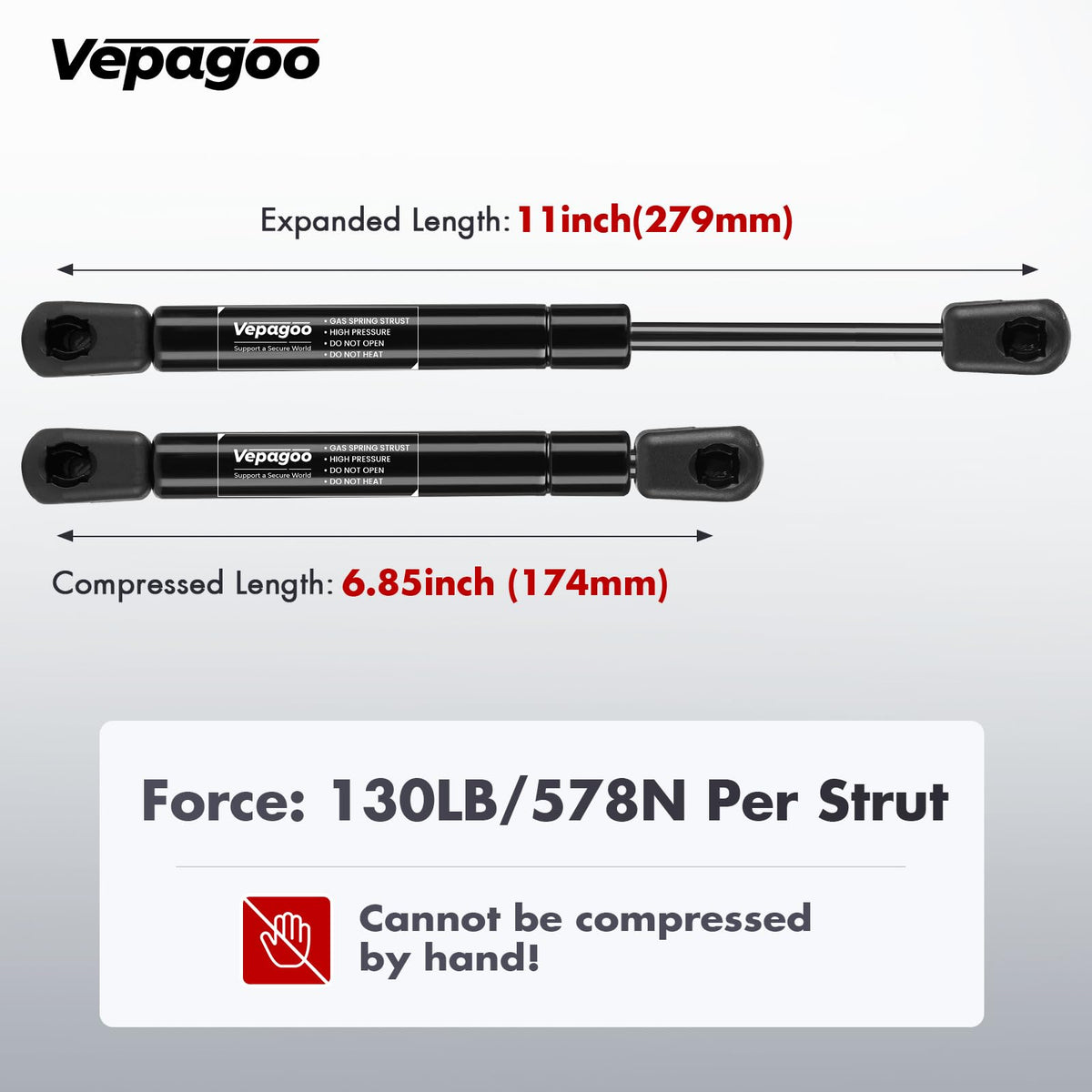 Vepagoo 11 inch 130Lb/578N Gas Strut Shock for Truck Tool Box Lid, Weatherguard Toolbox Lift Support Camper Topper Window Cadet