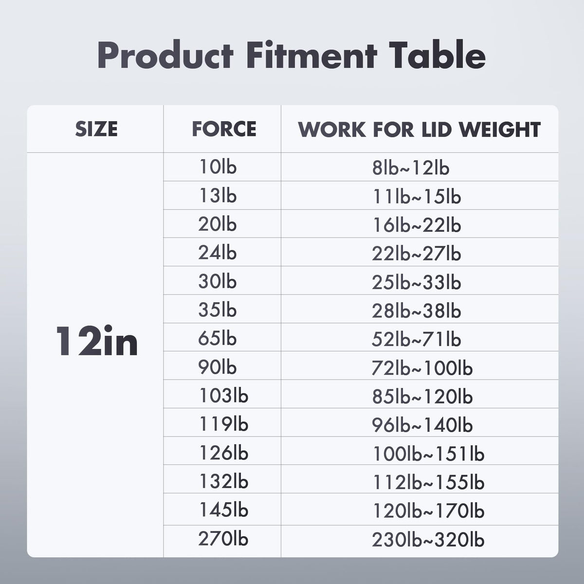 Q: What is the force capacity of these gas struts?A: Each Vepagoo gas strut has a force capacity of 132Lbs (587N), making them suitable for lifting and supporting various truck and toolbox applications.
