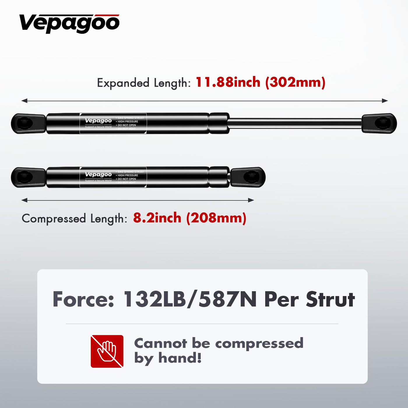 Vepagoo 12 Inch 132Lb Gas Struts Shocks For Camper Shell Rear Window, Weatherguard Tool Box Lid, Truck Canopy Cap Cover, Lift Su