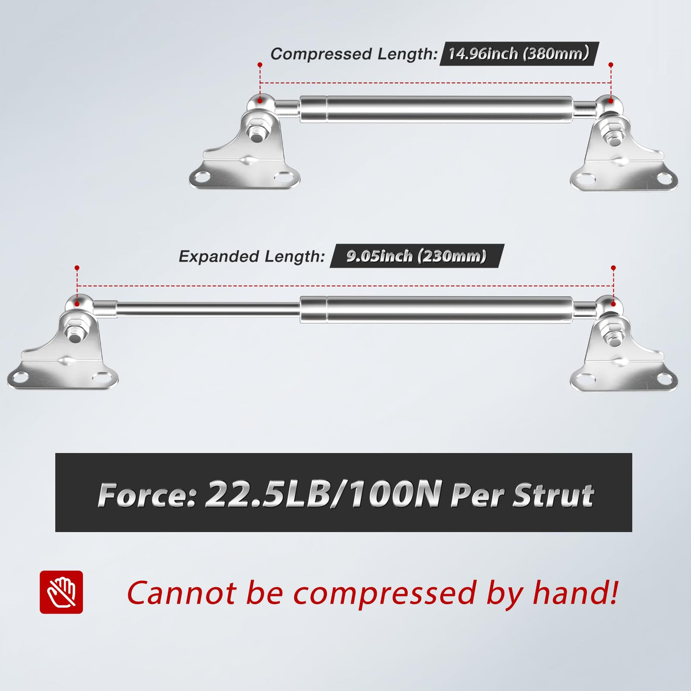 Vepagoo 15 Inch 22.5Lb/100N Stainless Steel Gas Struts Shock For Boat Hatch, Marine Spring Prop Lift Support With Brackets For R