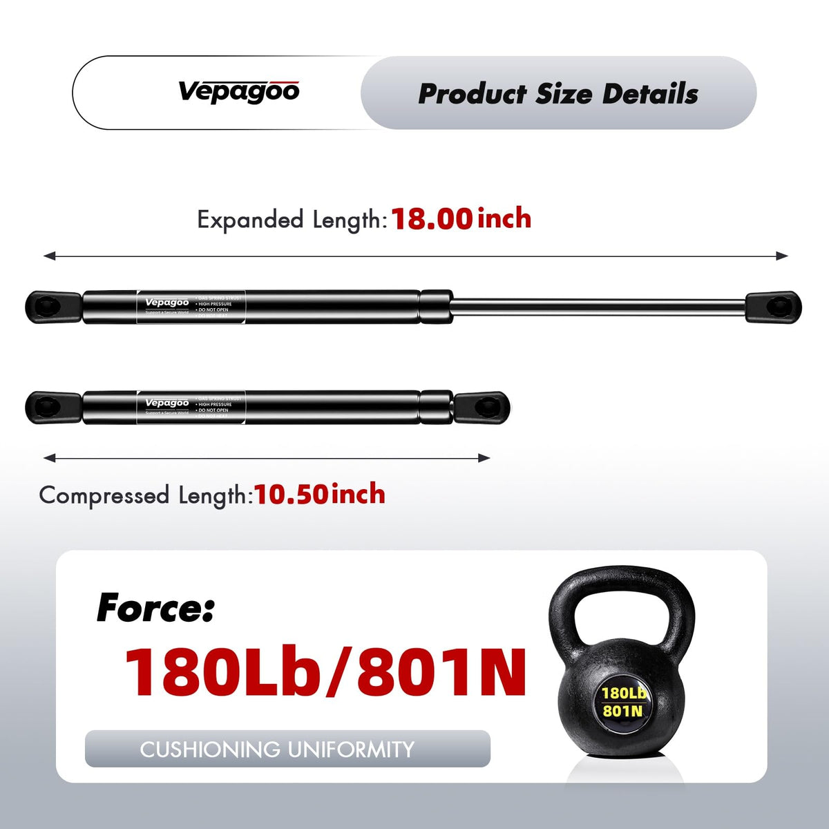 Vepagoo 18 Inch 180Lb/801N Gas Struts Shocks Sping Camper Topper Shell Are Leer Rear Window Truck Canopy Cap Cover Lift Support
