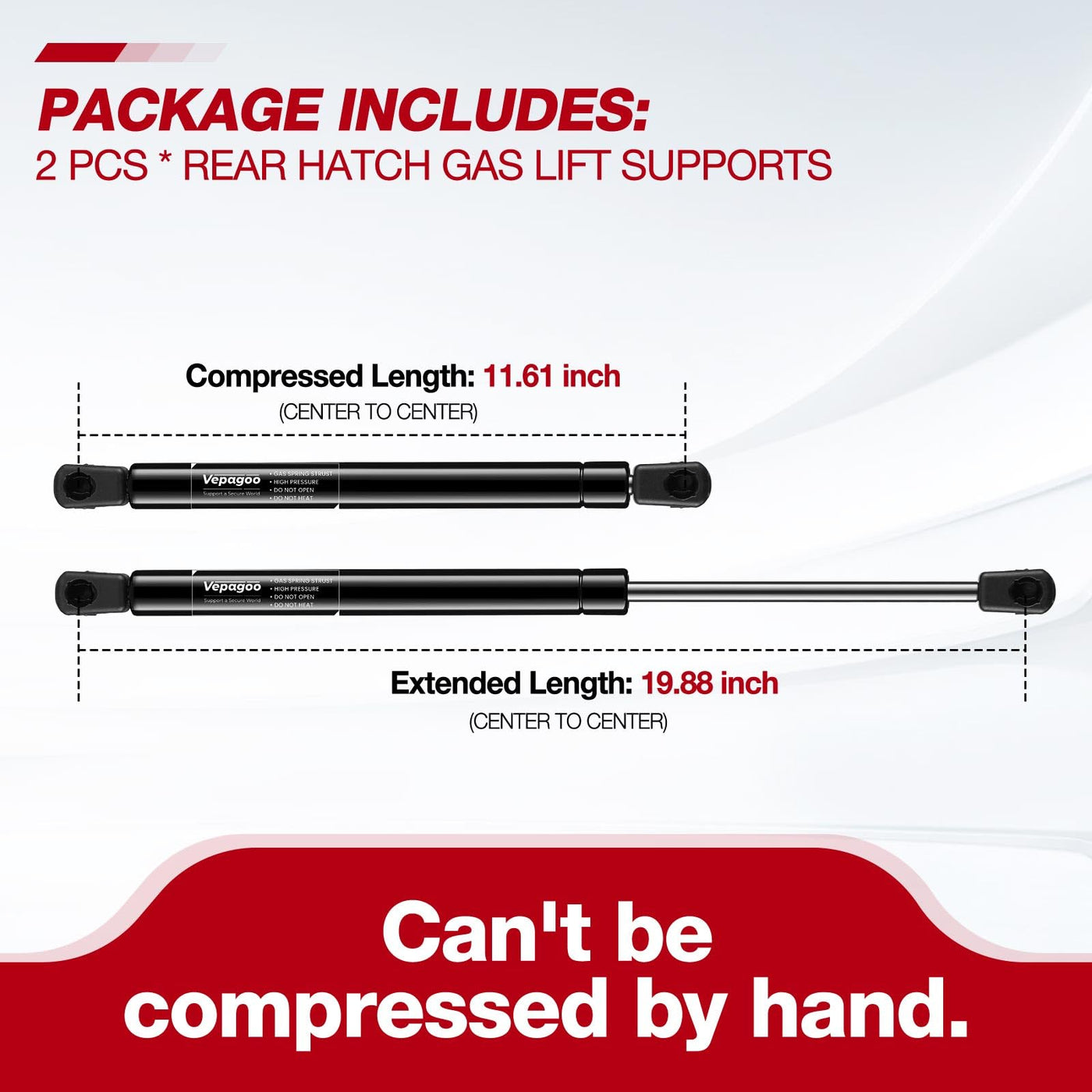 Vepagoo Rear Hatch Gas Charged Lift Supports - Specially designed with added pressure for Nissan 350Z 2003 To 2008 Larger Spoiler Hatchback | Best replacement as your worn--out factory lift supports, also known as charged gas shocks, props, dampers, arms Compatible with PM1012,4194,8196284,90452CD700 | 2PCs Liftgate Gas Shock -- Extended Length: 20.00inch,Compressed Length: 13.00inch;Ext.ser.num: 512N | Rust--resistant Black Nitride corrosion resistant piston rod extends product life;individually tested for excellent operating performance | A new package will be offered if any quality defects occur. Welcome to click ''ask seller'' besides your order for in-time assistance