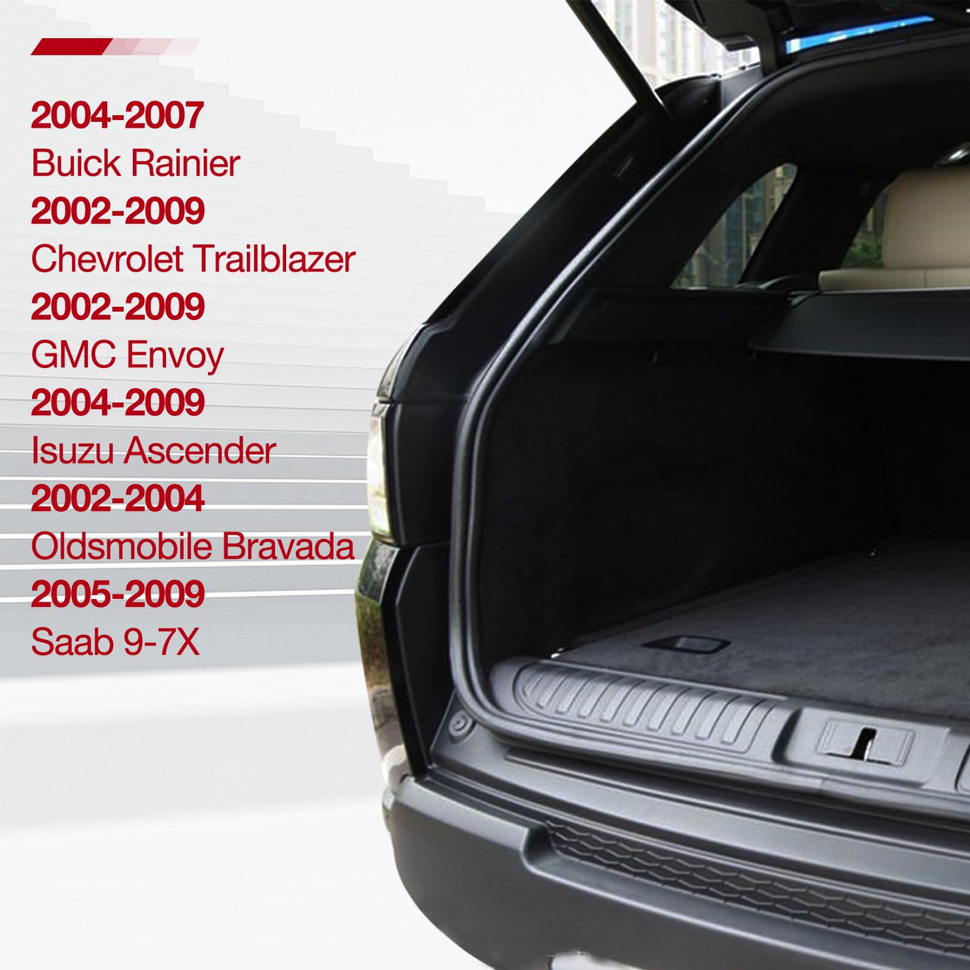 '2004-2007 Buick Rainier Base Sport Utility 4-Door Liftgate-Excluding XL EXT LT (extended length body style) 2006-2007 Buick Rainier CXL Plus Sport Utility 4-Door Liftgate-Excluding XL EXT LT (extended length body style) 2004-2007 Buick Rainier CXL Sport Utility 4-Door Liftgate-Excluding XL EXT LT (extended length body style) 2004-2005 Buick Rainier Cxl Plus Sport Utility 4-Door Liftgate-Excluding XL EXT LT (extended length body style) 2004-2007 Chevrolet Trailblazer A Sport Utility 4-Door Liftgate-Excluding XL EXT LT (extended length body style) 2004-2007 Chevrolet Trailblazer B Sport Utility 4-Door Liftgate-Excluding XL EXT LT (extended length body style) 2002-2009 Chevrolet Trailblazer Base Sport Utility 4-Door Liftgate-Excluding XL EXT LT (extended length body style) 2004-2006 Chevrolet Trailblazer EXT B Sport Utility 4-Door Liftgate-Excluding XL EXT LT (extended length body style) 2003-2006 Chevrolet Trailblazer EXT Sport Utility 4-Door Liftgate-Excluding XL EXT LT (extended length body style) 2002-2009 Chevrolet Trailblazer LS Sport Utility 4-Door Liftgate-Excluding XL EXT LT (extended length body style) 2002-2009 Chevrolet Trailblazer LT Sport Utility 4-Door Liftgate-Excluding XL EXT LT (extended length body style) 2002-2009 Chevrolet Trailblazer LTZ Sport Utility 4-Door Liftgate-Excluding XL EXT LT (extended length body style) 2002-2004 Chevrolet Trailblazer North Face Sport Utility 4-Door Liftgate-Excluding XL EXT LT (extended length body style) 2005 Chevrolet Trailblazer Q Sport Utility 4-Door Liftgate-Excluding XL EXT LT (extended length body style) 2005 Chevrolet Trailblazer R Sport Utility 4-Door Liftgate-Excluding XL EXT LT (extended length body style) 2006-2009 Chevrolet Trailblazer SS Sport Utility 4-Door Liftgate-Excluding XL EXT LT (extended length body style) 2002-2009 Gmc Envoy Base Sport Utility 4-Door Liftgate-Excluding XL EXT LT (extended length body style) 2002-2009 Gmc Envoy Denali Sport Utility 4-Door Liftgate-Excluding XL EXT LT (extended length body style) 2002-2009 Gmc Envoy SLE Sport Utility 4-Door Liftgate-Excluding XL EXT LT (extended length body style) 2002-2009 Gmc Envoy SLT Sport Utility 4-Door Liftgate-Excluding XL EXT LT (extended length body style) 2004-2009 Isuzu Ascender Base Sport Utility 4-Door Liftgate-Excluding XL EXT LT (extended length body style) 2004-2009 Isuzu Ascender LS Sport Utility 4-Door Liftgate-Excluding XL EXT LT (extended length body style) 2004-2005 Isuzu Ascender Limited Sport Utility 4-Door Liftgate-Excluding XL EXT LT (extended length body style) 2004-2009 Isuzu Ascender S Sport Utility 4-Door Liftgate-Excluding XL EXT LT (extended length body style) 2002-2004 Oldsmobile Bravada Base Sport Utility 4-Door Liftgate-Excluding XL EXT LT (extended length body style) 2005-2009 Saab 9-7X 4.2i Sport Utility 4-Door Liftgate-Excluding XL EXT LT (extended length body style) 2005-2009 Saab 9-7X 5.3i Sport Utility 4-Door Liftgate-Excluding XL EXT LT (extended length body style) 2005-2009 Saab 9-7X Aero Sport Utility 4-Door Liftgate-Excluding XL EXT LT (extended length body style) 2005 Saab 9-7X Arc Sport Utility 4-Door Liftgate-Excluding XL EXT LT (extended length body style) 2005-2009 Saab 9-7X Base Sport Utility 4-Door Liftgate-Excluding XL EXT LT (extended length body style) 2005 Saab 9-7X Unear Sport Utility 4-Door Liftgate-Excluding XL EXT LT (extended length body style)''