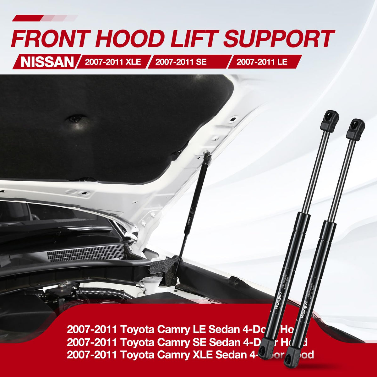 Vepagoo 6333 Front Hood Struts Compatible For 2007-2011 Toyota Camry Base/Ce/Hybrid/Le/Se/Xle Gas Shock Lift Supports,Sedan 4-Do