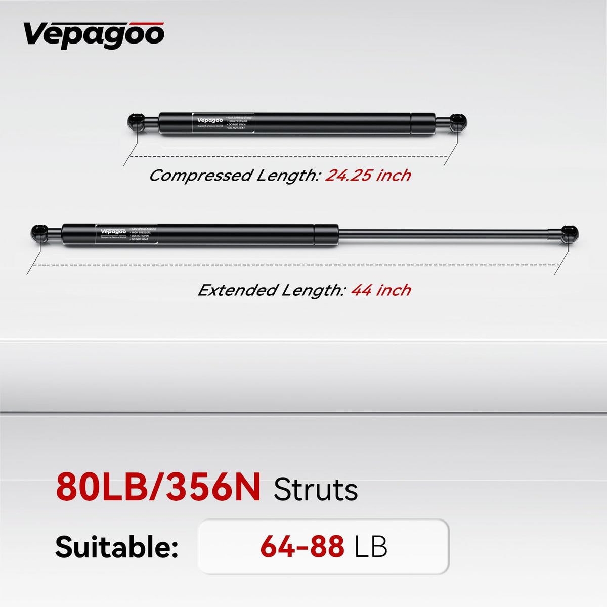 Vepagoo St440M80 44 Inch 80Lb/356N Gas Shock Strut Spring Long Lift Support For Snowmobile Trailer Lift Rv Door Heavy Duty Truck