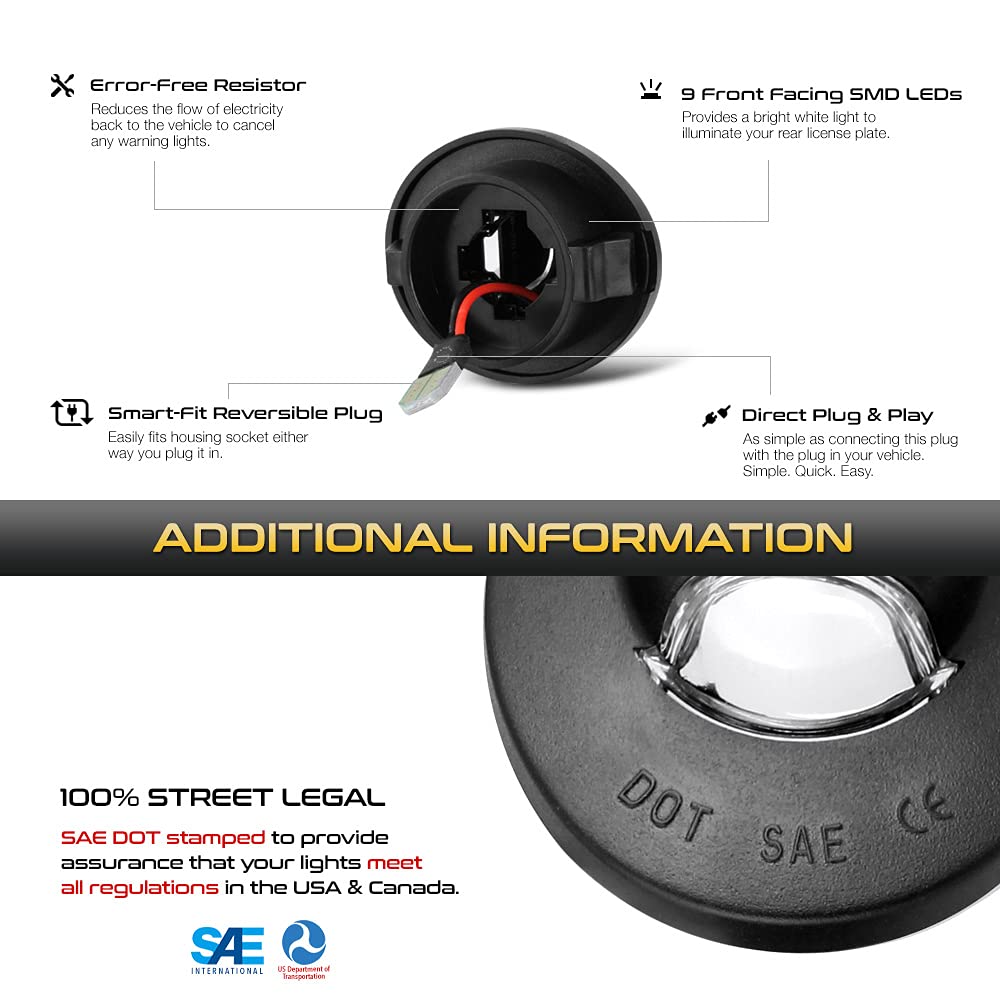 Vipmotoz Bright White Smd Led License Plate Light Compatible With Ford F150 F250 F350 Super Duty Ranger Pickup Explorer Bronco E