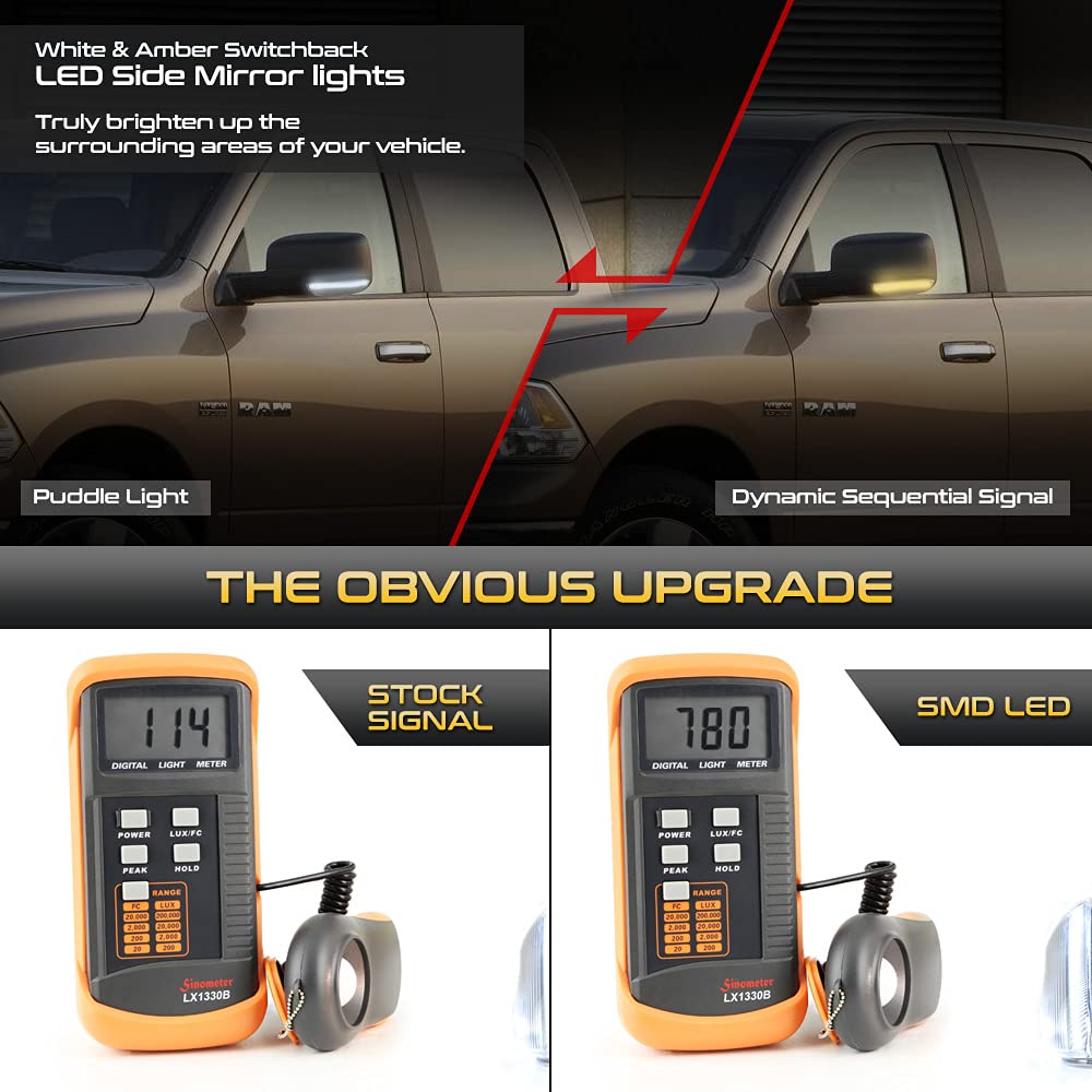 Vipmotoz Switchback Full White & Amber Led Side Mirror Turn Signal Light Puddle Lamp Assembly For 2009-2018 Compatible With Dodg