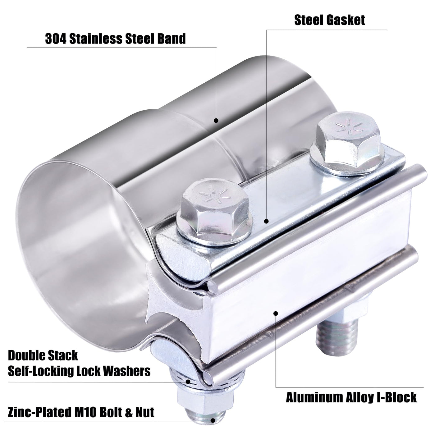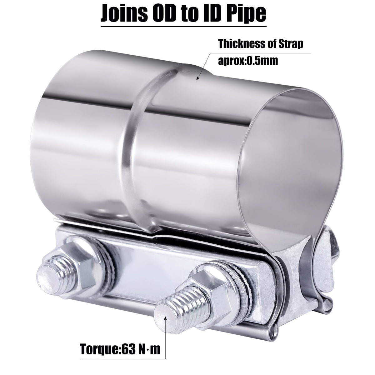 Vitonsbay 3.0 Inch Exhaust Clamp, 3 Inch Lap Joint Exhaust Band Clamp Sleeve Coupler Stainless Steel (2Pcs)