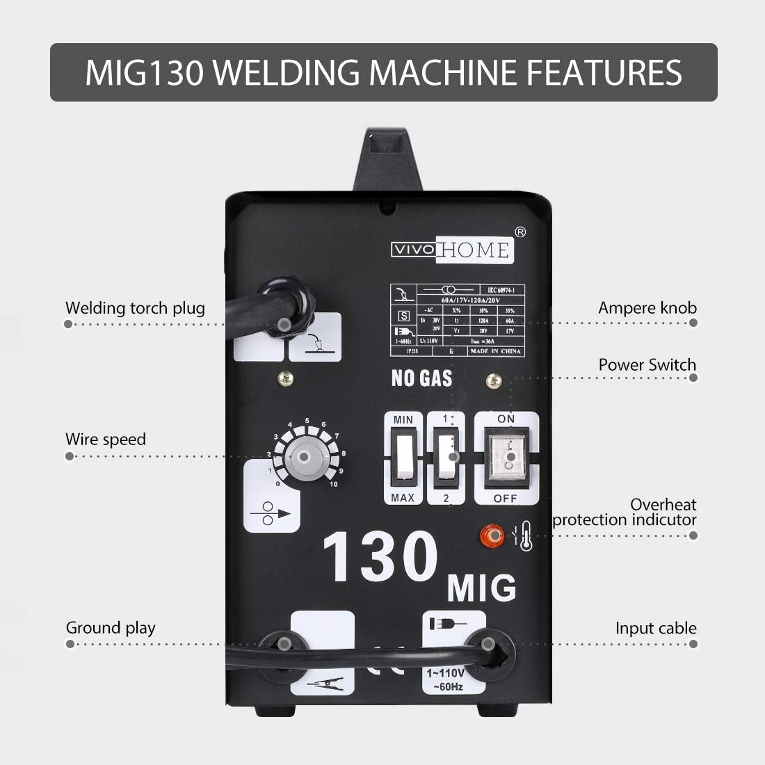 VIVOHOME MIG Welder 130 Flux Core Wire Automatic Feed Welding Machine Portable No Gas 110V DIY Home Welder w/Free Mask Black