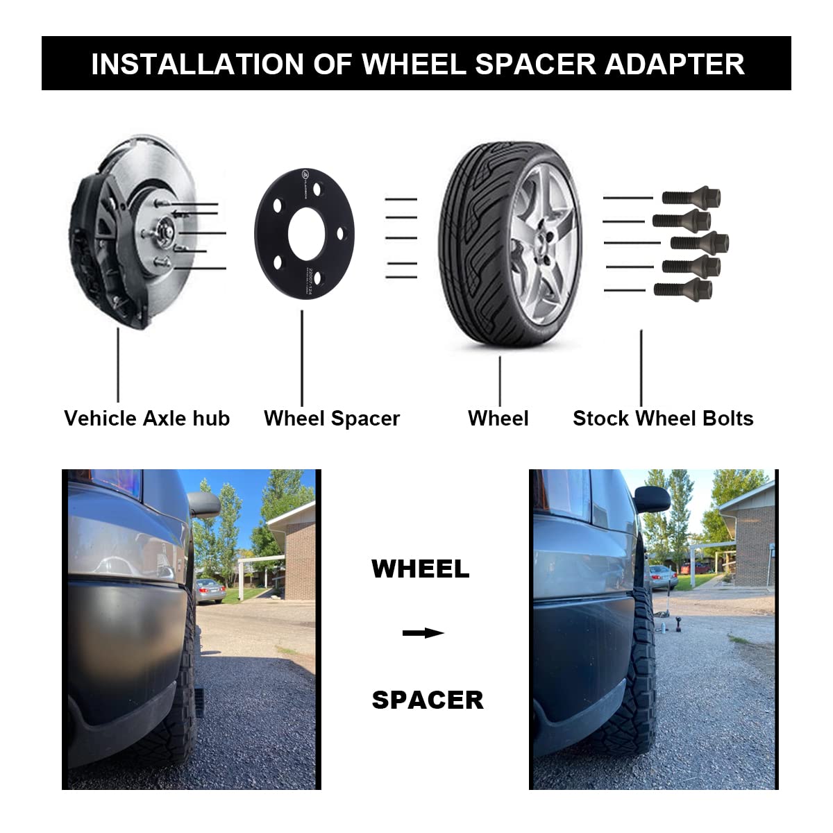 Q: Is installation of these wheel spacers easy?A: Yes, the VLAOSCHI wheel spacers feature easy bolt-on installation, requiring no special tools. However, it's important to recheck all bolts after 20-50 miles of driving and then again after 1,000-2,000 miles for safety.