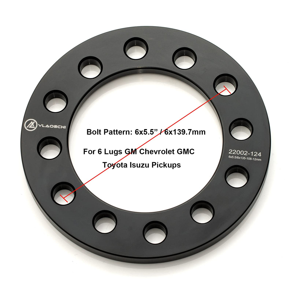 *If you don't make sure whether this item fits to you, message us with your vehicle year, maker and model, we will find the item you need.Compatible Vehicles1999-2022 Silverado 1500 2000-2022 Suburban 15001995-2022 Tahoe2003-2014 Express 15002004-2012 Colorado 1999-2022 Sierra 15002003-2014 Savana 15001992-2022 Yukon 15002004-2012 CanyonCompatible with Ford F150 2004-2022 (DO NOT FIT 1992-2003 F150)Compatible with Ford Expedition 2003-2022Compatible with Lincoln Navigator 2003-2022Compatible with Cadillac Escalade 1999-20221996-2022 4-Runner2007-2014 FJ Cruiser2001-2007 Sequoia2001-2022 Tacoma(Only 6 Lug)2000-2006 Tundra1982-1997 Land Cruiser2005-2022 FortunerCompatible with Ram 1500 2019-2022Important Information Please verify the bolt count, bolt circle diameter, center bore, and bolt size match your vehicle before ordering.This is 12mm wheel spacer, to mount the rims safely, it needs the stock studs are 12mm long extraly. If not, you need to replace them to longer ones.We don't recommend to install the bolt nuts by electronic tool, it is best by manual. No returns or exchanges once they have been installed.
