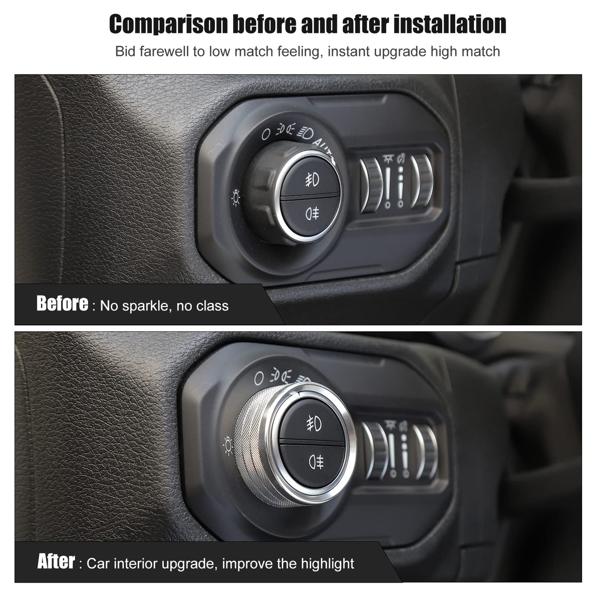 Voodonala Air Conditioner Headlight Switch Knob Trim For 2018-2023+ Jeep Wrangler Jl Jlu Gladiator Jt,Aluminum Alloy 4Pcs(Only F