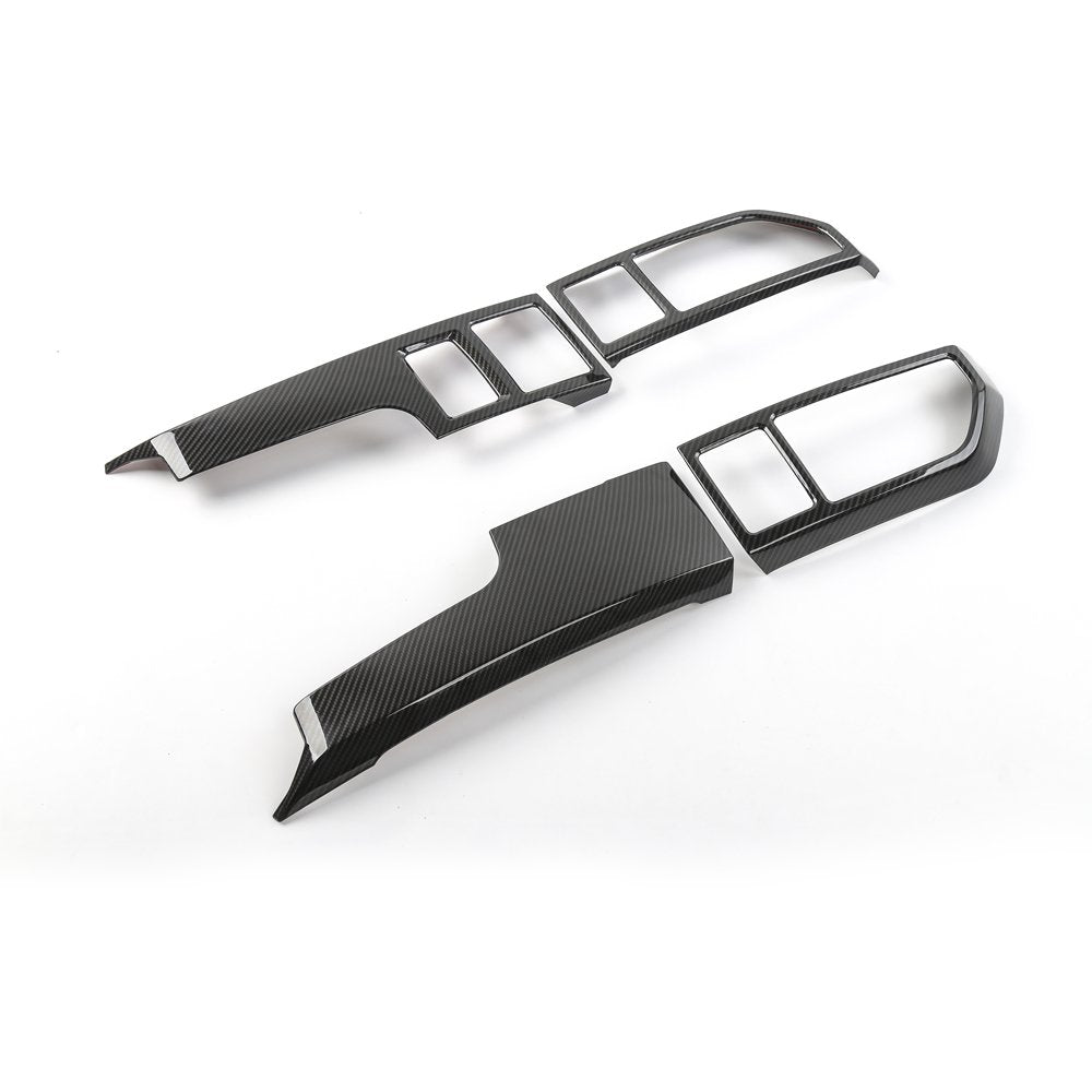 Q: What material is the Voodonala Central Control Cover made of?A: The trim is made of high-quality ABS plastic with a carbon fiber grain surface finish, providing both durability and a stylish look.