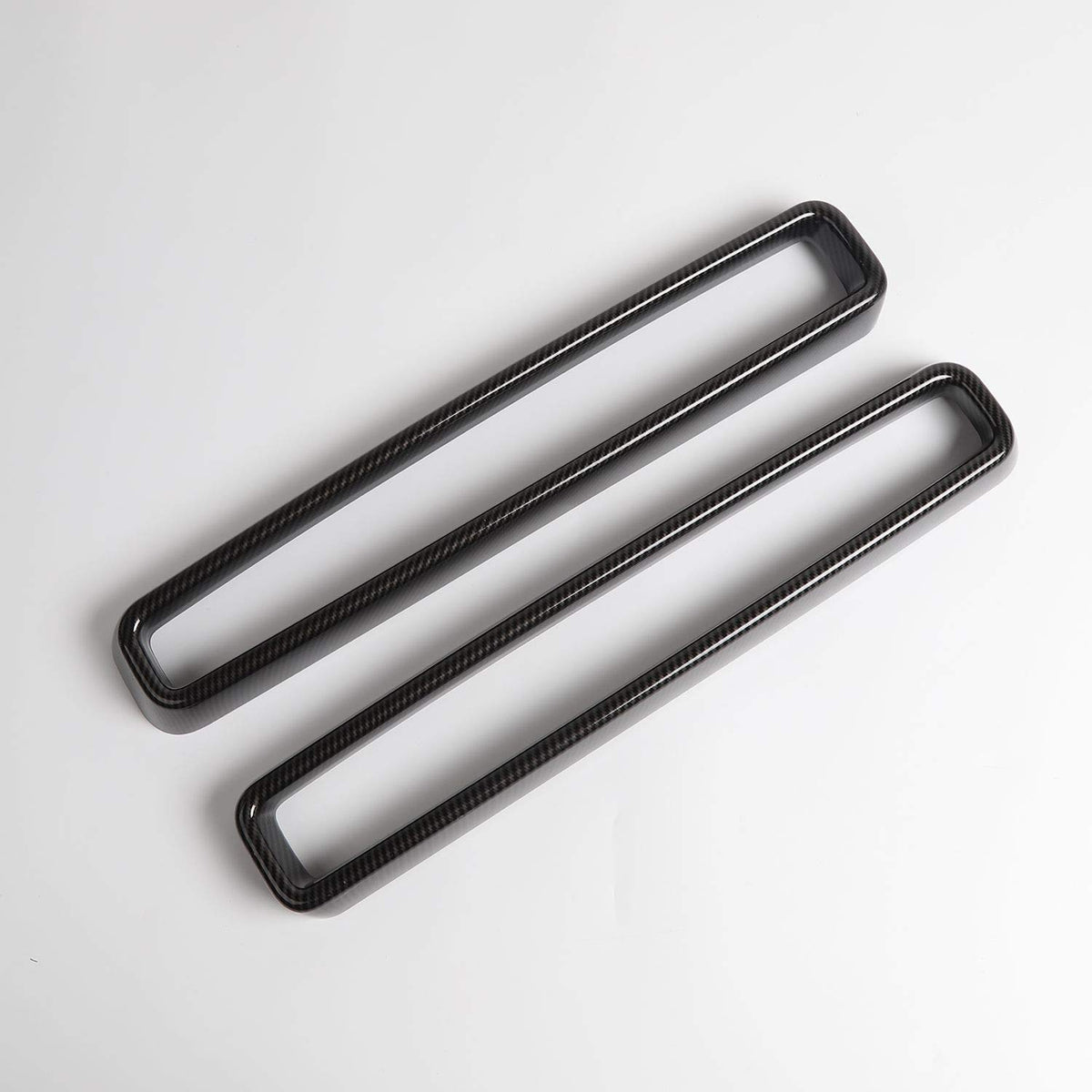Q: What materials are used in the construction of the grille inserts?A: These grille inserts are made from high-quality Acrylonitrile Butadiene Styrene (ABS) plastic, providing durability and a stylish carbon fiber look to enhance your vehicle's interior.