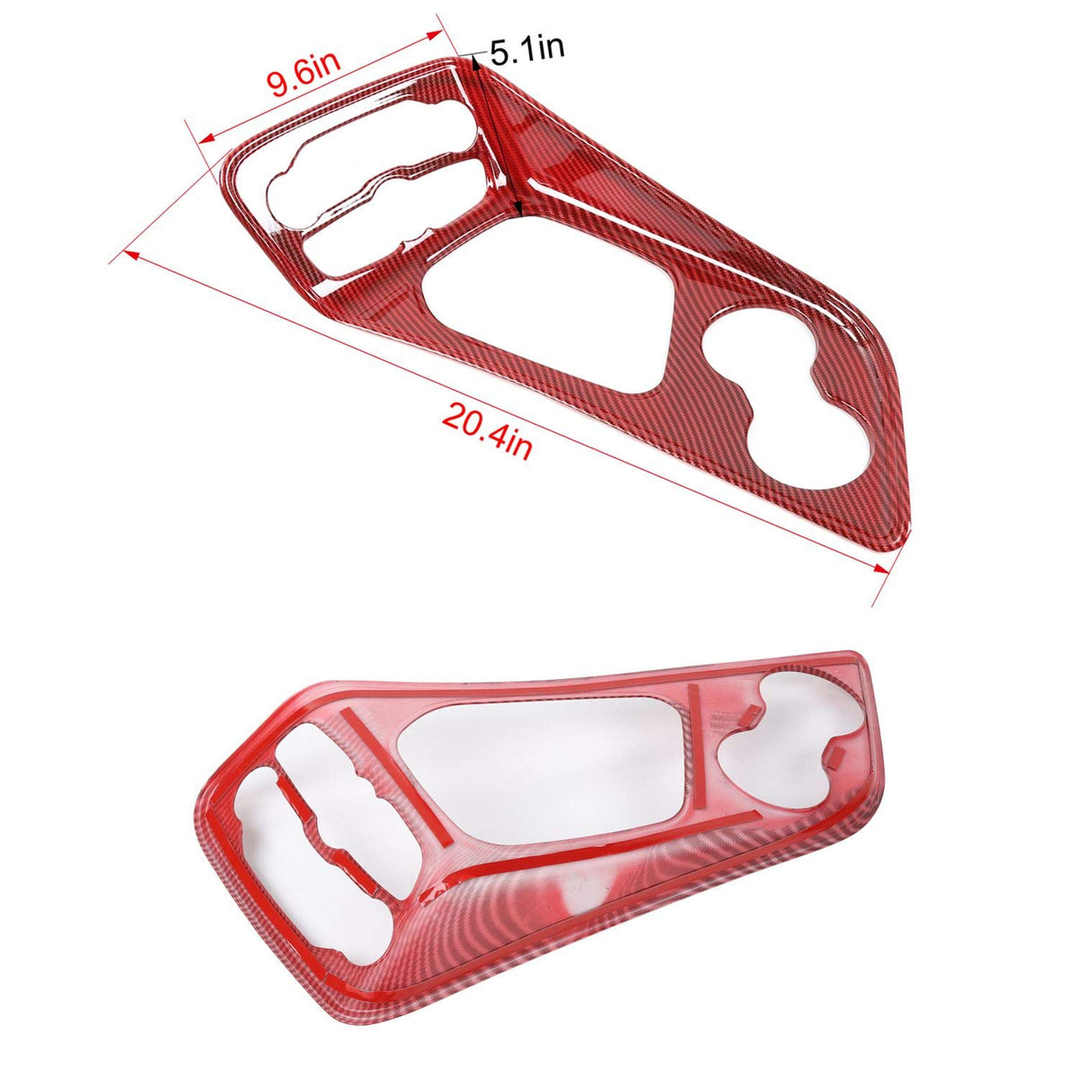 Voodonala For Challenger Gear Shift Panel Trim For 2015-2022 Dodge Challenger, Abs Red/Carbon Fiber