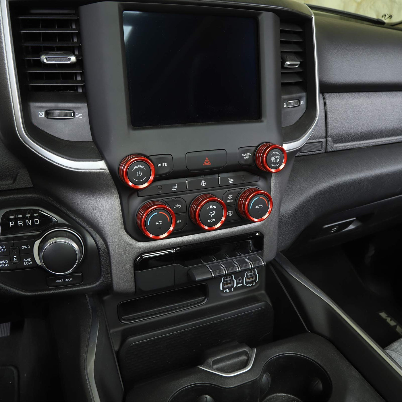 Voodonala for Dodge RAM Aluminum Center Console AC Radio Headlight Dashboard CD Switch Climate Control HVAC Knob Cover for 2018-