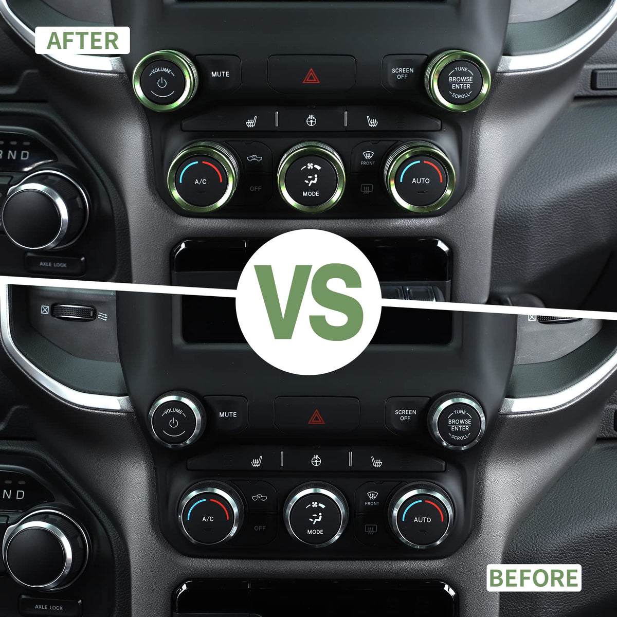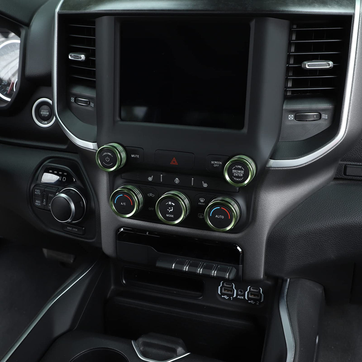 Voodonala for Dodge RAM Aluminum Center Console AC Radio Switch Knob Cover for 2018-2025+ RAM, 5pcs Green