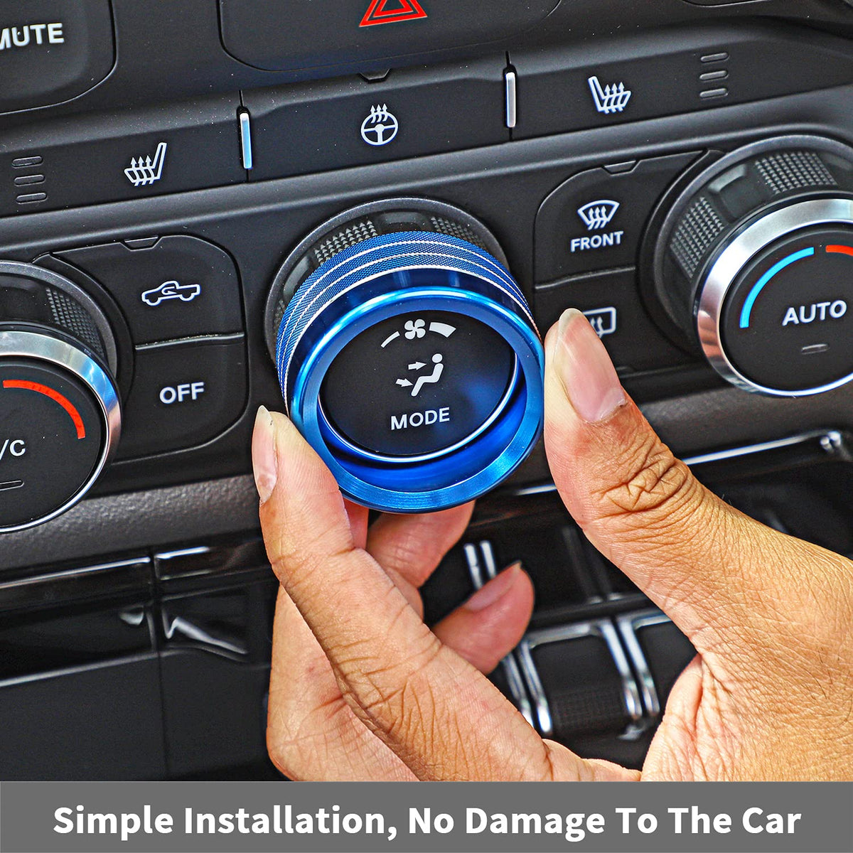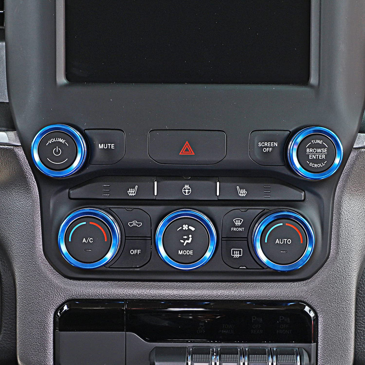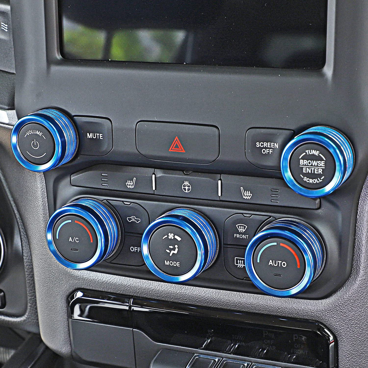Voodonala for Dodge RAM Aluminum Center Console AC Radio Switch Knob Cover for 2018-2025+ RAM Interior Accessories, 5pcs Blue
