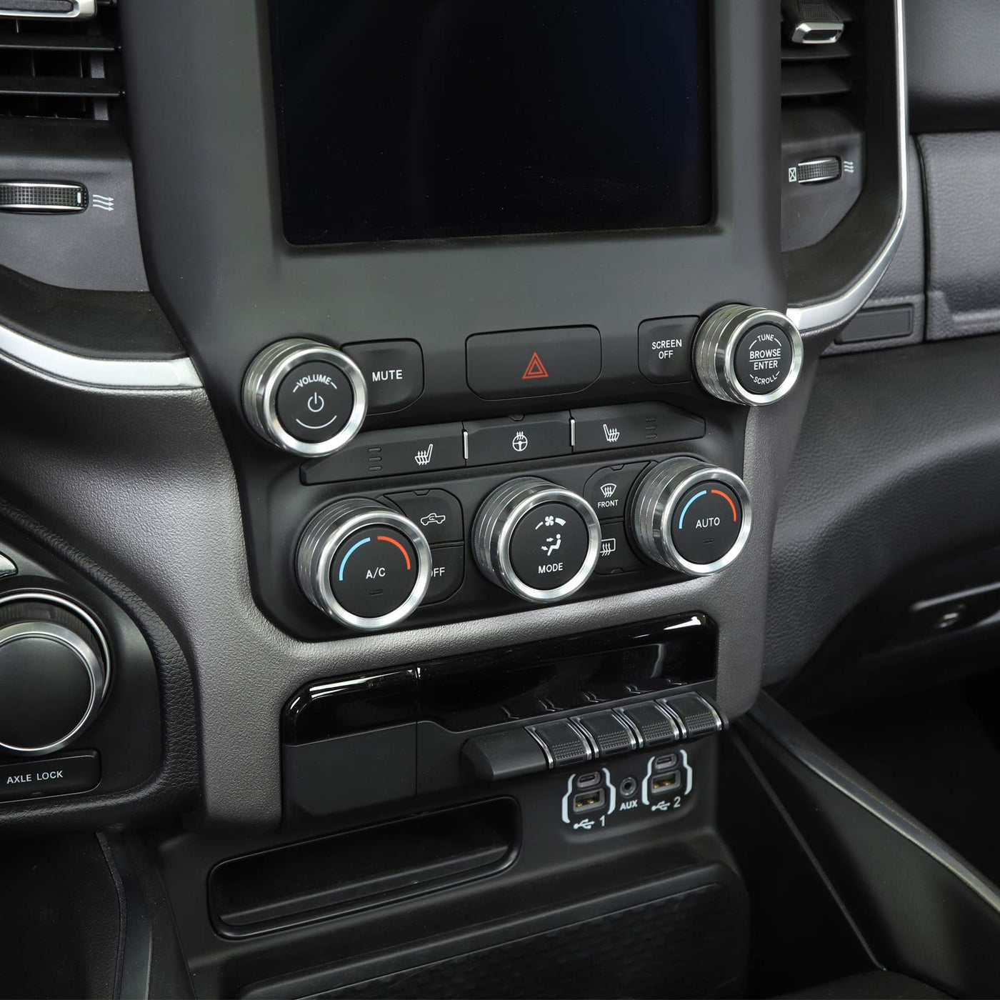 Voodonala for Dodge RAM Aluminum Center Console AC Radio Switch Knob Cover for 2018-2025+RAM Interior Accessories, 5pcs Silver