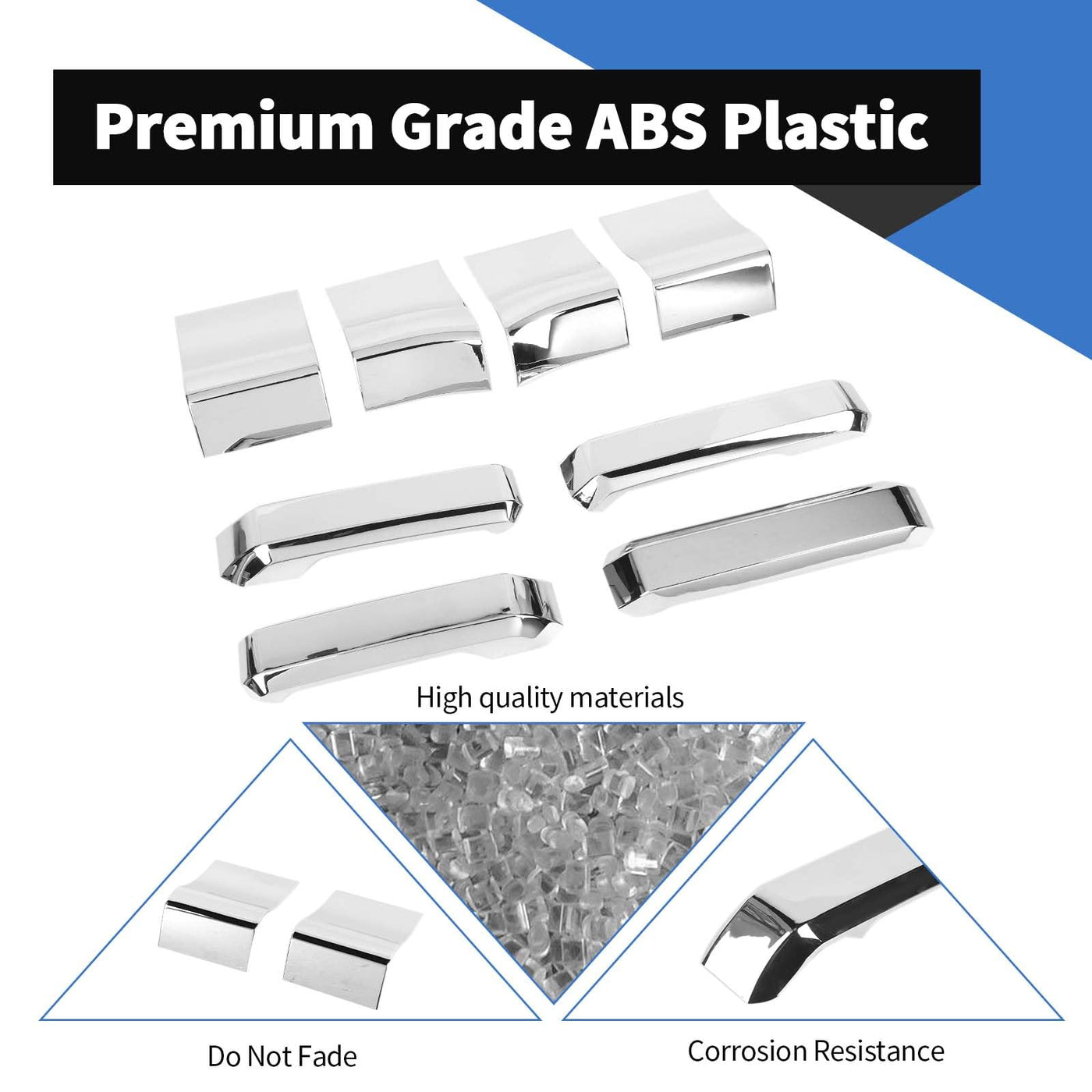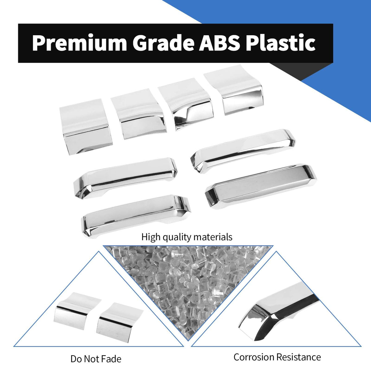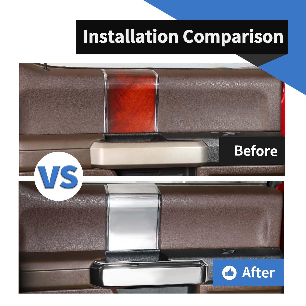 for 2015 2016 2017 2018 2019 2020 Ford F150,Not Fit SuperCrew Cab.*Material : High quality ABS, surface is Painted to Chrome. *Easy to install, with Double-sided adhesive tape on the back, pls cleaning surface, and heat the Double-sided adhesive tape by a hair dryer before stick on, and press it almost 1 minute *Decorate the car charming luxury vivid, it can cover existing scratches and prevent your car from fingernails, key scratches, etc. Package Included: 4 PCS Inner Door Handle Cover with 4 PCS Handle Side Trim Cover for Ford F150 Attention: Please check your Car Model before submitting your order. If the installation is abnormal or you need help with installation, please attach the photo as soon as possible on Email to Contact Us.