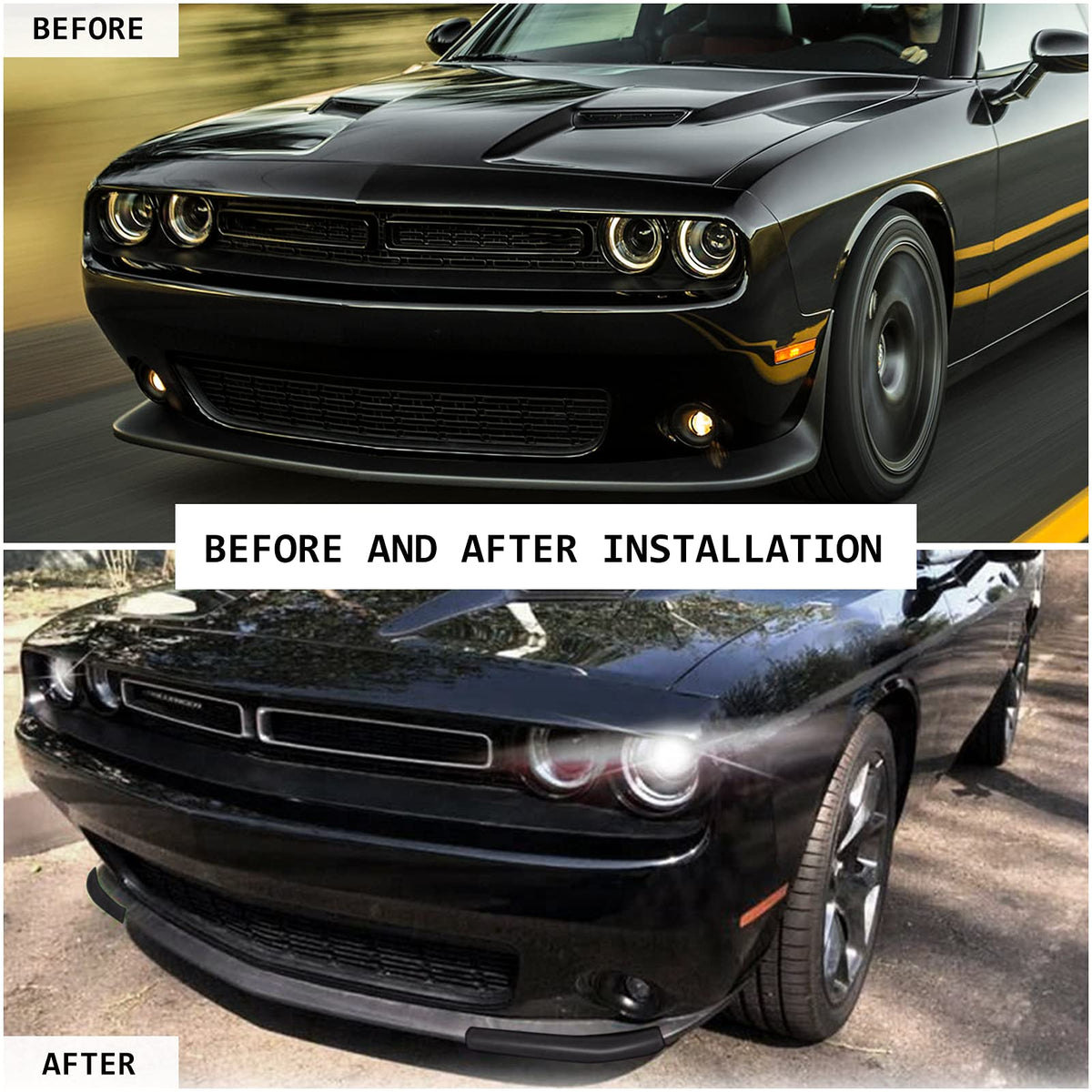 Designed on Orginal Car Size ,Suit for 2015-2023 Dodge Challenger Scat Pack, SRT 392 and 2019-2023 RT GT, not Suit for R/T Plus and all Widebody. Made by High Quality ABS(Acrylonitrile butadiene styrene plastic),which is known for being durable and fairly lightweight. Making it perfect to handle daily-driver use.durability and superior toughness, making it perfect to handle daily-driver use.Function: provide protection for bumper, but also great help to reduce airflow. Meanwhile, It can cover existing scratches and prevent your car from scratch and abrasion.Practical design ;Its streamlined design creates an aggressive yet refined look. It's well made for an exact fit when mounted.Package includes: 2x Black Front Lip Cover,Screws not included.Easy to install, there is no drilling or cutting required.If get any question,pls connect to us .