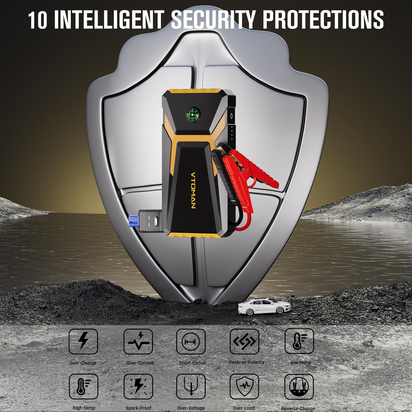 VTOMAN V6 Pro Portable Car Jump Starter - Your Reliable Companion on the Road The VTOMAN V6 Pro is an upgraded portable car battery jump starter designed to provide unmatched performance and peace of mind on every journey. Equipped with a powerful 2000A peak current, the V6 Pro can jump-start 12V vehicles, including cars, trucks, motorcycles, boats, RVs, and even tractors, up to 30 times on a single charge. Whether youre dealing with extreme temperatures or a completely dead battery, the V6 Pro is built to perform in challenging conditions, ensuring youre never stranded. Key Features: Unmatched Performance: With 2000A peak current, the V6 Pro effortlessly jump-starts vehicles with engines up to 7L gas or 5L diesel, even in extreme temperatures ranging from -4F to 140F. Multi-Functional Power Bank: The V6 Pro is more than just a jump starter. It features a Type-C input port with PD 15W fast charging, allowing you to fully charge the device in just 3.3 hours. Additionally, two USB outputs (5V/2.4A and 5V/9V/12V) let you power various electronic devices on the go. Enhanced Safety: Equipped with ten advanced smart chips and safety-protected jumper cables, the V6 Pro ensures safe and reliable operation. The ''BOOST'' function allows you to jump-start a totally dead battery with voltage below 2V, making it a dependable tool in emergencies. Compact and Portable: Weighing just 0.8 pounds and measuring 6.8x3.3x1.2 inches, the V6 Pro is lightweight and portable, fitting easily into your glove box or pocket. It also includes a built-in compass for added convenience during outdoor adventures. Long Standby Time: With automatic shutdown after 10 seconds of inactivity, the V6 Pro conserves power and offers a remarkable standby time of up to 24 months, ensuring it's always ready when you need it. Versatile LED Flashlight: The V6 Pro features a 300-lumen LED flashlight with three modes (Normal, Strobe, SOS), perfect for outdoor activities or emergency situations. Series Details: The VTOMAN V6 Pro is part of the VTOMAN Jump Starter series, known for its reliability and advanced technology. This series is designed to provide users with powerful and portable solutions for vehicle emergencies, ensuring that youre never left stranded. With a focus on performance, safety, and versatility, the VTOMAN Jump Starter series is a must-have for anyone who values peace of mind on the road. Specifications: Peak Current: 2000A Battery Capacity: Capable of up to 30 jump starts Engine Support: Up to 7L gas or 5L diesel engines Temperature Range: -4F to 140F Charging Time: 3.3 hours (from 0% to 100%) USB Outputs: 5V/2.4A, 5V/9V/12V Weight: 0.8 pounds Dimensions: 6.8x3.3x1.2 inches LED Flashlight: 300 lumens with Normal, Strobe, and SOS modes Standby Time: 24 months Included in the Box: VTOMAN V6 Pro Jump Starter, Smart Jumper Cable, Type-C USB Cable, Carrying Bag, User Manual, 18-Month Warranty Whether youre embarking on a road trip or just commuting to work, the VTOMAN V6 Pro ensures youre always prepared for unexpected battery issues. Its not just a jump starter; its a reliable companion that keeps you safe and connected on the road.
