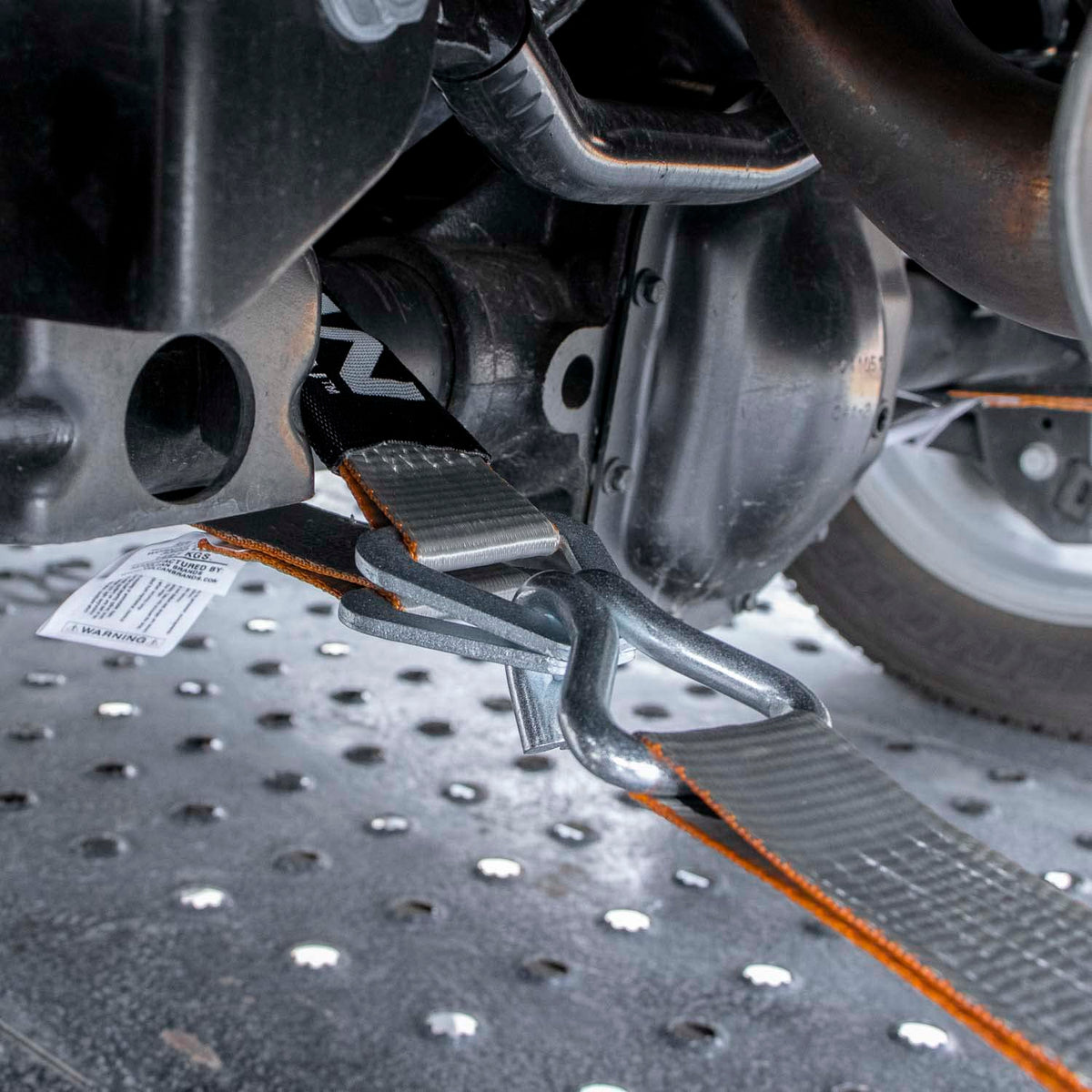 For Low Clearance ApplicationsHaul any car, truck, Jeep, ATV, UTV, or SUVDesigned for when you need to tie down by the axle or through the vehicle's rimsFlexible 1-ply 2'' x 22'' Silver Series tie down webbingHas excellent durability and long service lifeIncludes a sliding cordura wear pad for even more abrasion resistanceD ring accepts snap hook, grab hook, t-hook or J hookSafe Working Load 3300 lbs.Meets DOT regulations.