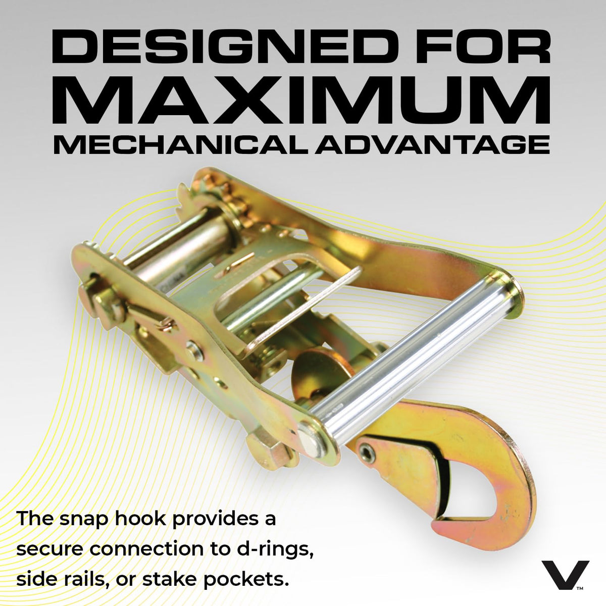 Vulcan Car Tie Down With Snap Hooks - Lasso Style - 2 Inch X 96 Inch - 4 Pack - Classic Yellow - 3,300 Pound Safe Working Load