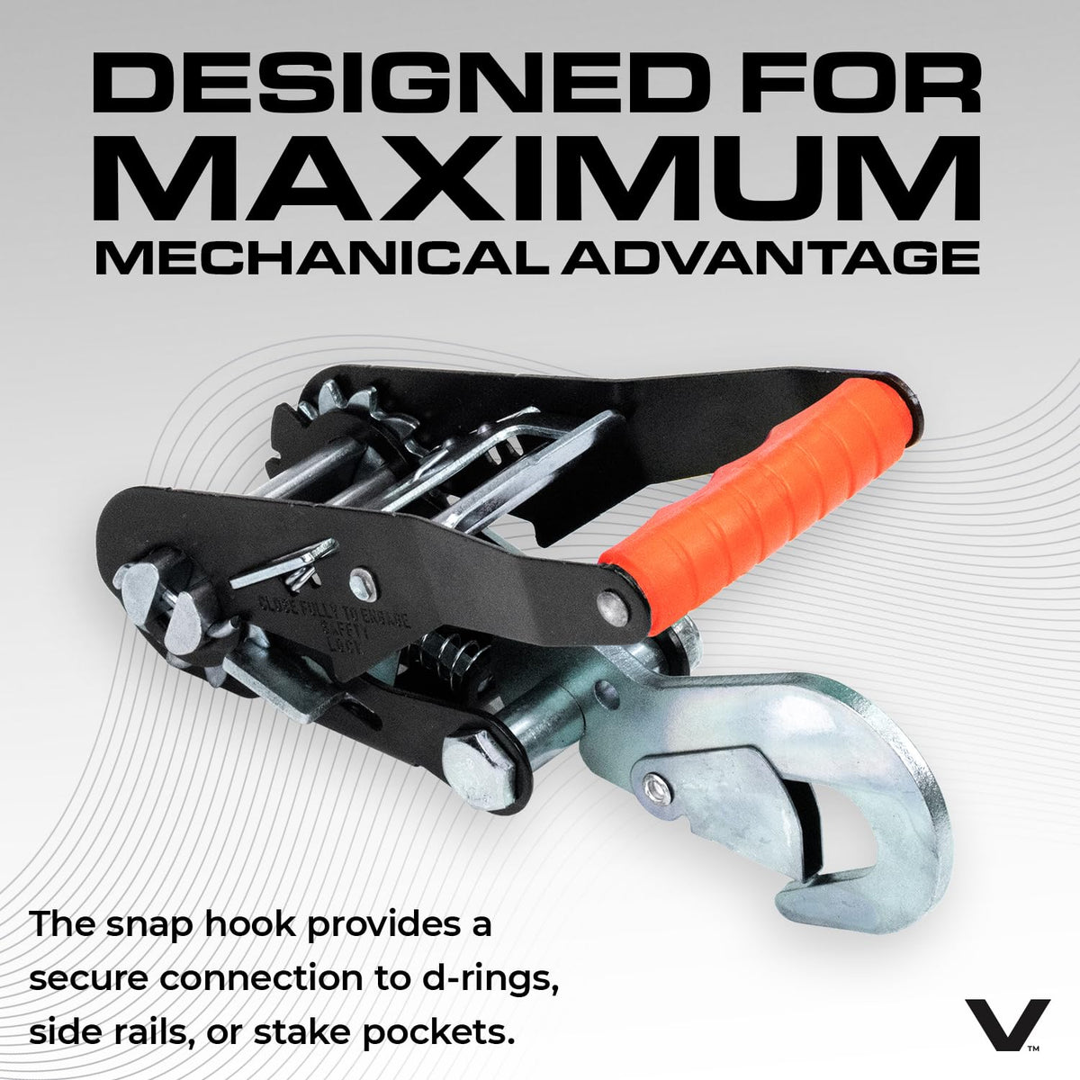 Vulcan Car Tie Down With Snap Hooks - Lasso Style - 2 Inch X 96 Inch, 4 Pack - Silver Series - 3,300 Pound Safe Working Load