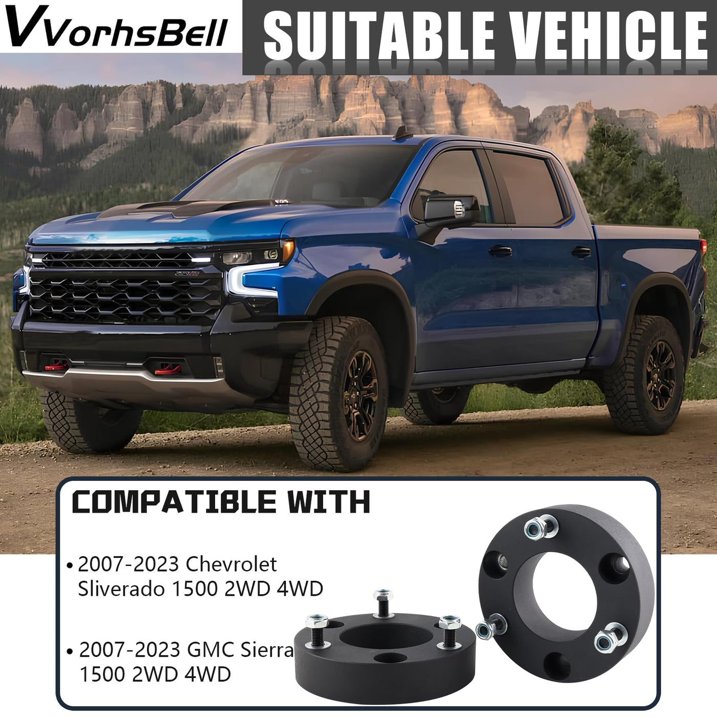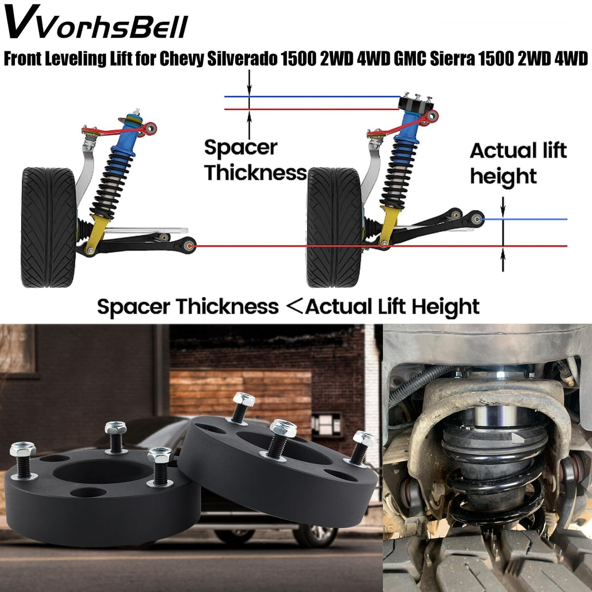 VVORHSBELL 2'' Front Leveling Lift Kit Compatible with 2007-2023 Chevy Silverado 2WD 4WD GMC Sierra 1500 2WD 4WD, Suspension Lev