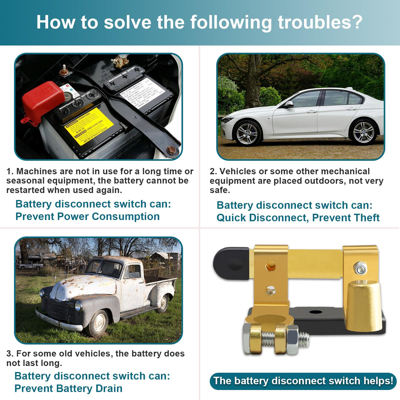Vwtni Battery Disconnect Switch, Top Post Knife Blade Master Switch, Battery Disconnect Switch 12V 24V, Battery Cut Off Shut Off