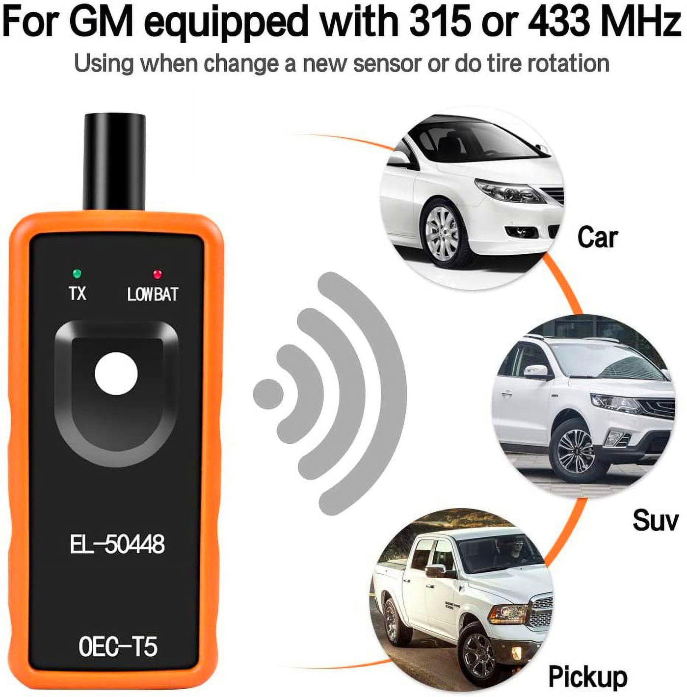 VXDAS EL-50448 TPMS relearn tool works on most Vehicles (Chevy / Buick / Cadillac / Opel from 2006-2023, Cars, SUV, Pickup) equipped with 315 or 433 MHz Tire Pressure Monitor system (TPMS) sensor. It is an essential tool of replacement tire pressure sensor, tire pressure alarm remove or exchange tires.