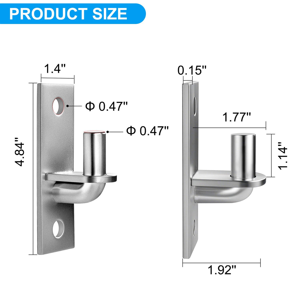 Homydom ---- Focus on producing high quality products !Homydom was founded in 1997 which is one of the well-known brands and we design, test and manufacture our devices to create reliability and longevity of all products.Homydom provide high-quality door accessories, as well as brackets, to bring convenience to your life! Heavy duty gate hinges. Premium fence post chain link gate hinge, made of high quality iron, silver galvanized coating, prevent red-rust, you can use them for a long time in your outdoor fence door or fence door. What You Get? 2 PACK chain link fence gate post hinge with diameter is 5/8'. *(Screws not included).The 5/8' male pin will let you use in conjunction with a 5/8' female Frame Hinge. (not included) Dimension:1.5(L)*1.6(W)*7.5(H), fit usual doors. Extend the life of your door hinges with our high quality wall mount gate hinge. Frame Hinge you can order in our store.Please order according to the size and number of door.