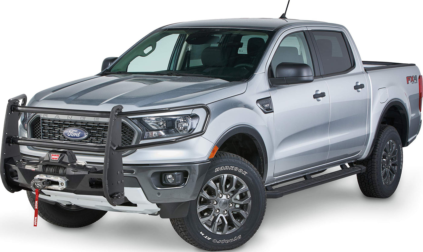 The WARN 104255 Bolt-On Center Grille Guard is commercial-grade and designed for the 2019-2020 Ford Ranger. It provides heavy-duty protection for the vehicles bumper, grille, fascia, and winch mounting system. Features a flat side member design with a stylized and replaceable rubber trim and includes 2'' tubular cross members (one with welded tabs to mount lights). The innovative design reduces the install time due to no cutting, drilling, or grinding required during installation. The WARN 104255 Bolt-On Center Grille Guard requires WARN PN 103322 mount system and is designed, tested, and made in the USA. Note: this will restrict the use of adaptive cruiser control and front parking sensors.