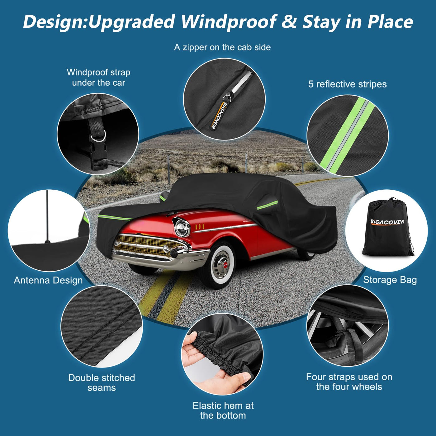 Waterproof Car Covers for Chevrolet Bel Air/150/210 1950-1957 Sedan/Coupe/Hardtop, 420D Oxford Cloth Sun Heat Protection Outdoor