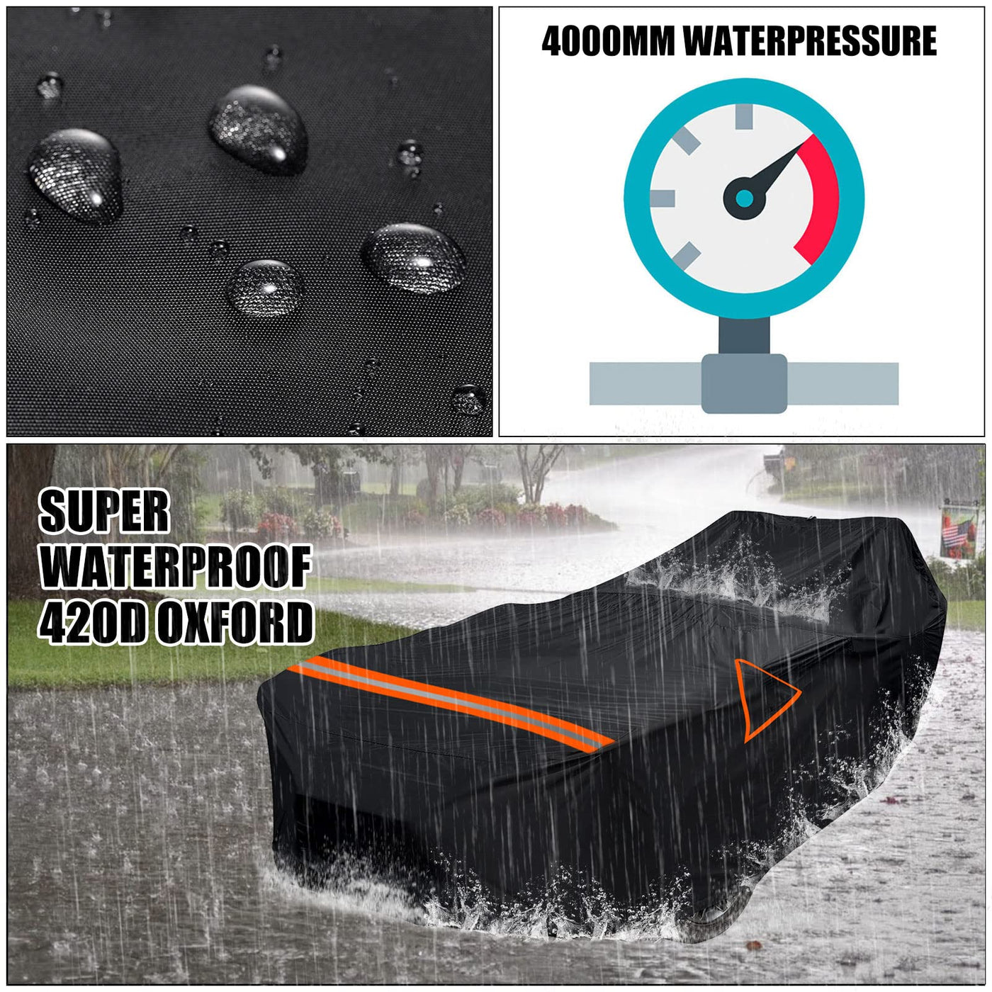 Feature: 1. 420D Oxford cloth 100% waterproof, It's great for rainproof snow-proof. High reflective aluminum is good at sun-proof and anti-uv, keeps car cool in the hot day. 2. Multi-layer car cover is thicker and heavier , that is why it more durable than other go kart covers Specification: Compatible with 2015 - 2022 Polaris Slingshot Base/S/SL/SL LE/SLR/SL Icon Series/SLR Icon Series/R/R LE Model Without top Main Material: 420D Oxford cloth Color: Black Package List: 1 PCS waterproof go kart cover