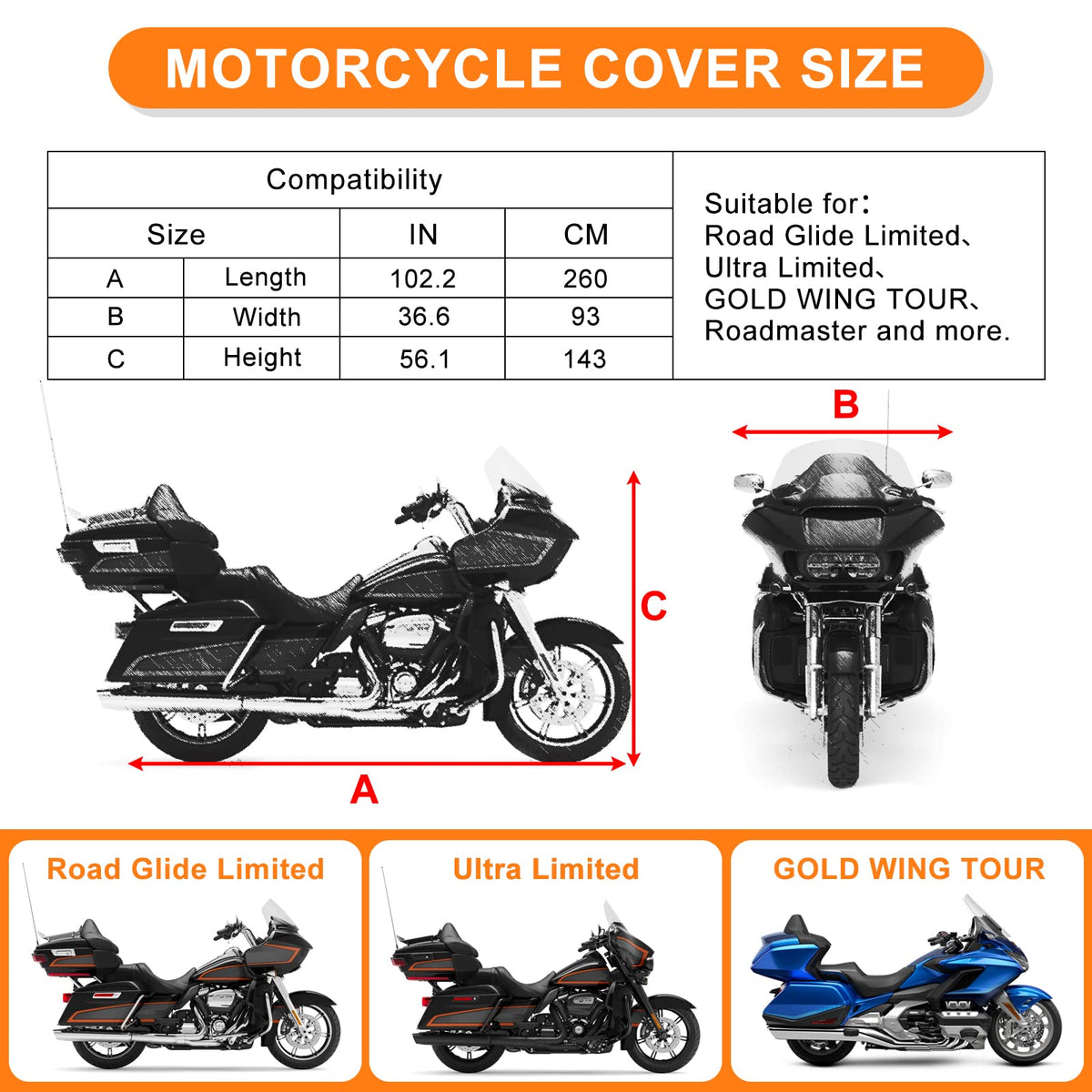 Waterproof Motorcycle Cover Replace For Harley Davidson Touring Road Glide Limited/Ultra Limited With Anti-Theft Lock Hole For Outdoor Rain Snow Protection (101 To 108Inches, With Trunk)