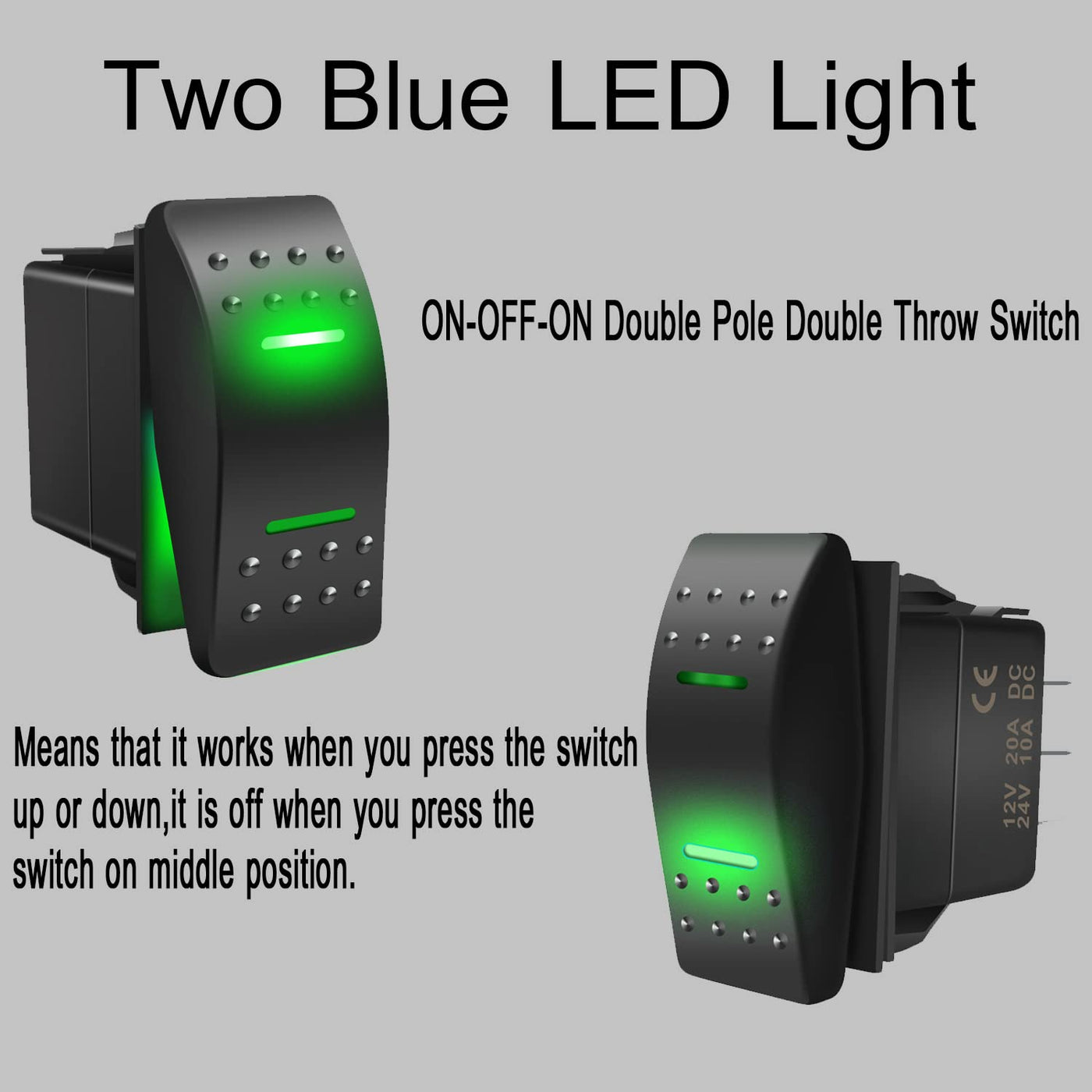 Waterproof Rocker Switch Toggle - On/Off/On Green Led Light - 12V 20Amp 24V 10Amp, 7 Pin For Automotive Cars Vehicles Marine Boats Trucks Trailers 4X4 Caravans Rv Suv Atv Utv & More, 5 Years Warranty